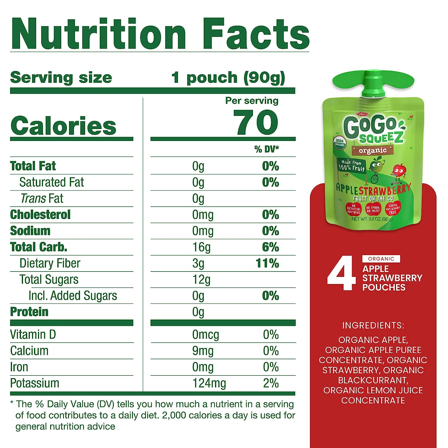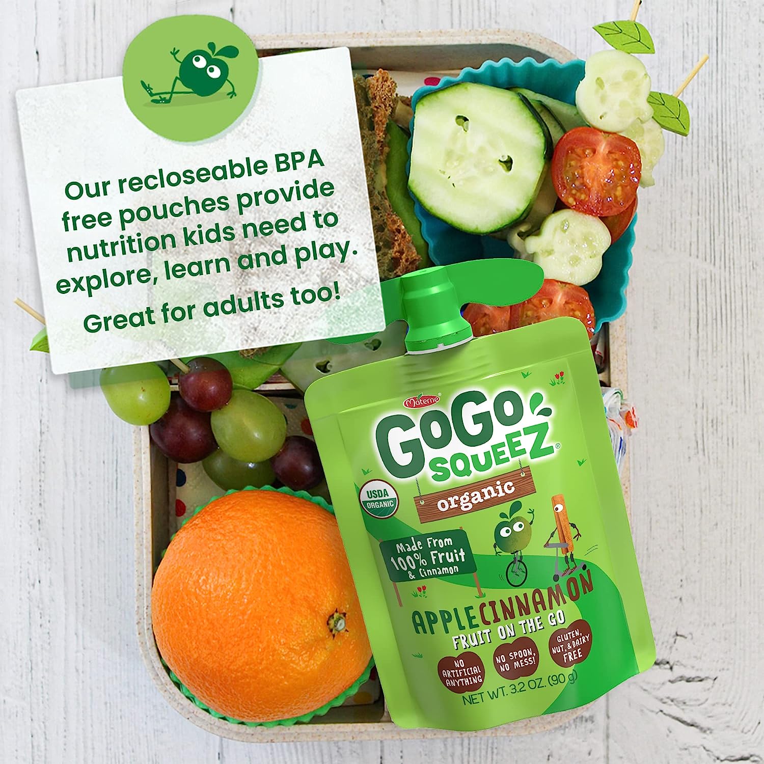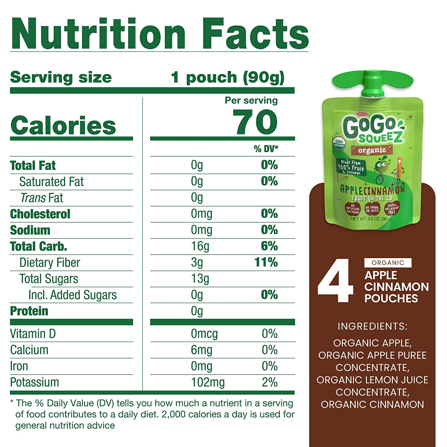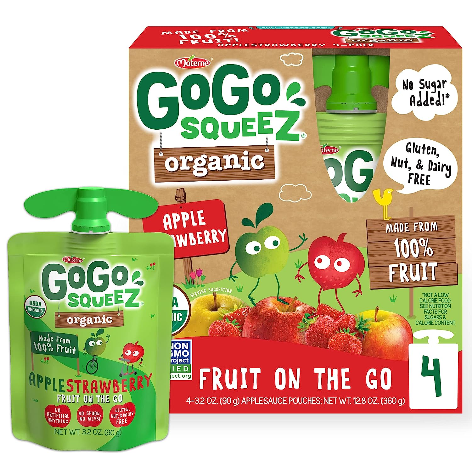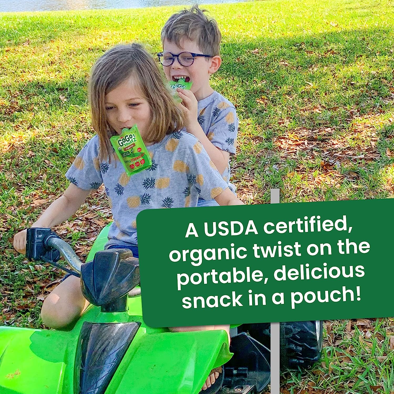 GoGo squeeZ Fruit on the Go Organic Apple Apple applesauce snack pouches are jammed packed with apples and a ton of yumminess, for a tasty snack anytime, anywhere. An organic twist on the original, GoGo squeeZ Fruit on the Go Organic Apple Apple is a portable, delicious, organic applesauce in a pouch. These unsweetened organic fruit snacks are made from organic fruit with no high fructose corn syrup (HFCS), no added colors or flavors and no sugar added.* All that lip-smacking fruit in a no-fuss, no-mess snack pouch! GoGo squeeZ unsweetened fruit snacks are Non-GMO Project Verified, gluten free, nut free, dairy free and kosher certified. Our products are free of all 9 major allergens, so you, your kids and your whole family can enjoy GoGo squeeZ snacks with confidence and share them without worry. GoGo squeeZ pouches are BPA free and feature easy-open caps and a built-in straw. No spoon, and no mess! From GoGo squeeZ Fruit on the Go, GoGo squeeZ fruit and veggieZ, GoGo BIG squeeZ, GoGo squeeZ Happy tummieZ, and GoGo squeeZ Morning smoothieZ to GoGo squeeZ yogurtZ, there's a variety of snacks to please every child (and adult!) in your family. *Not a low calorie food. See nutrition information for sugars and calorie content.