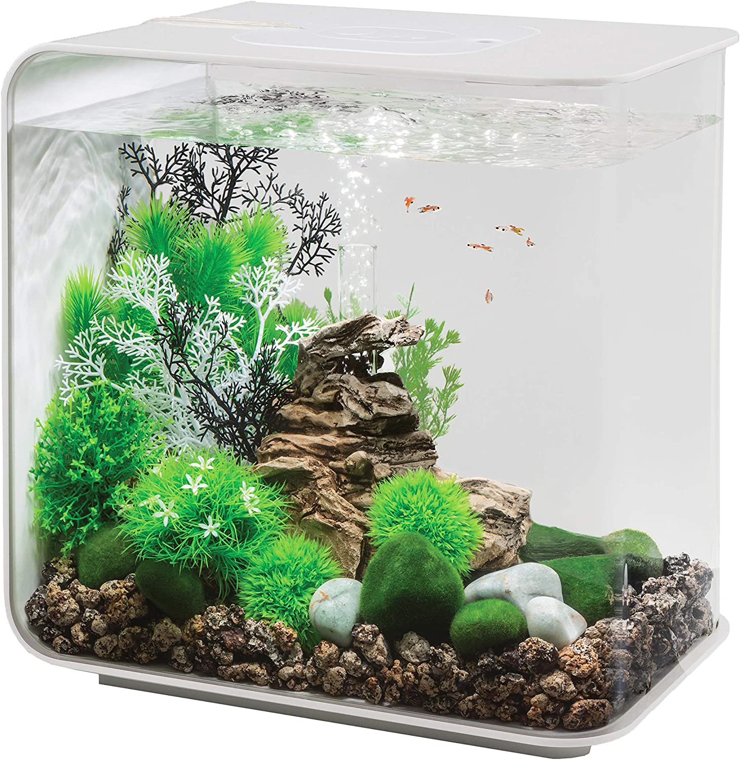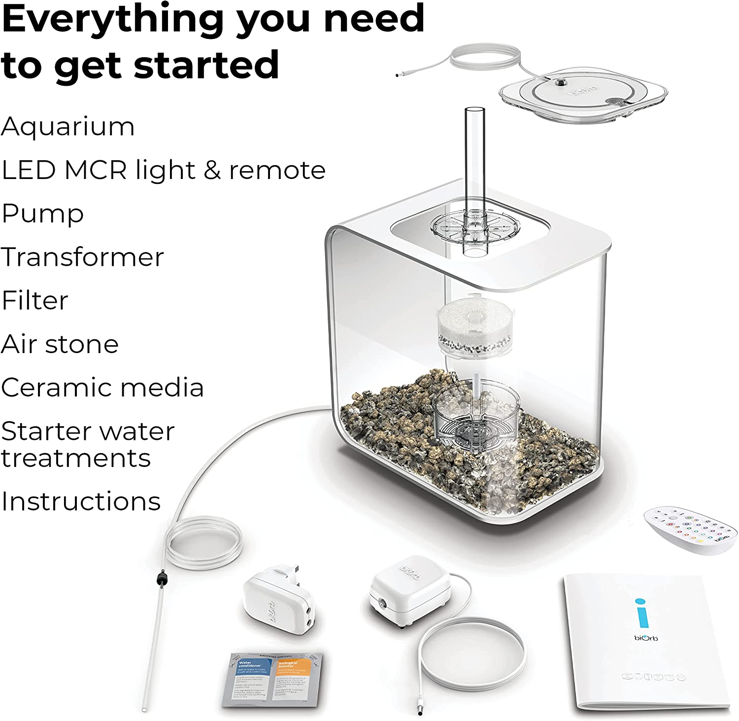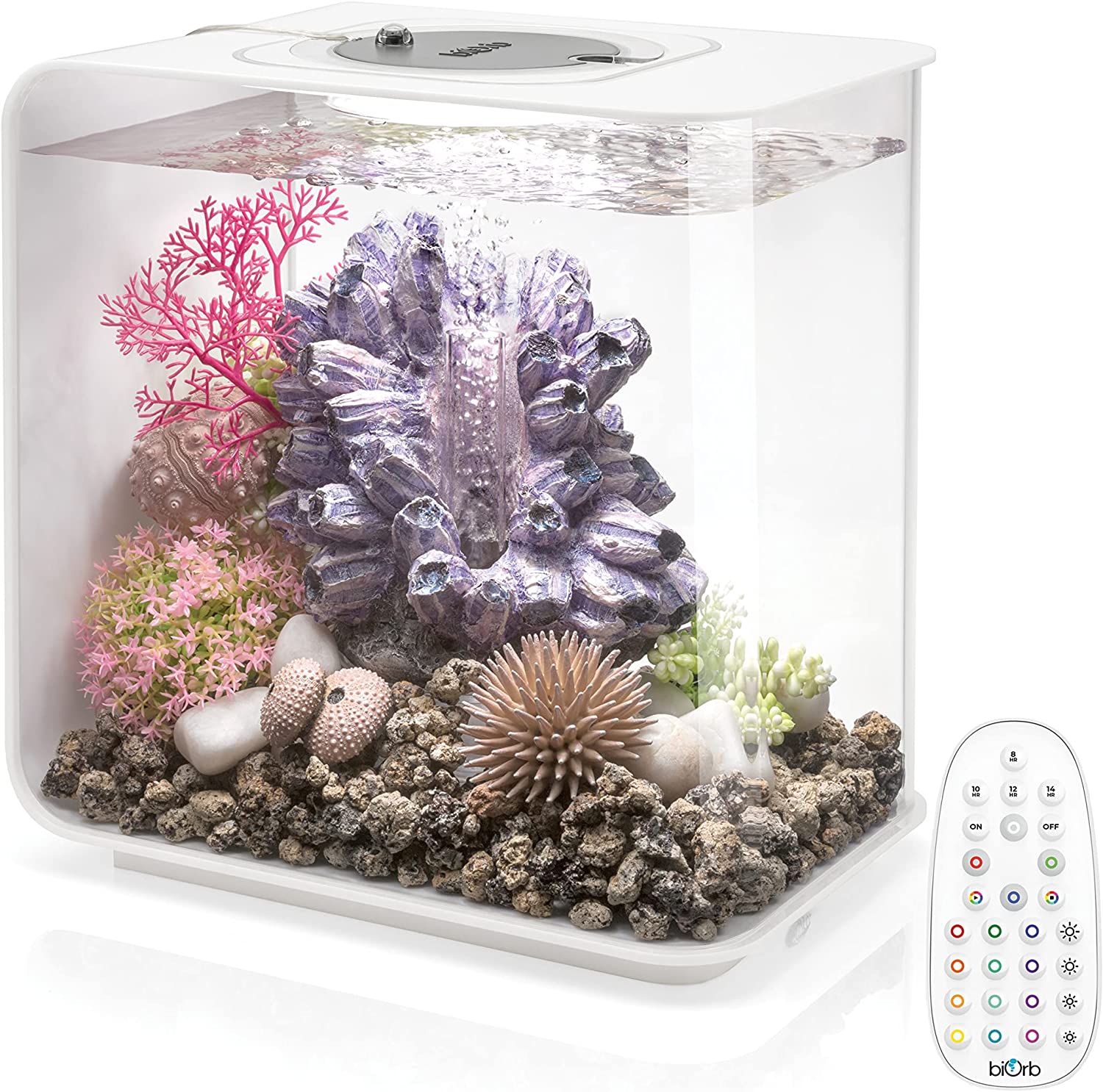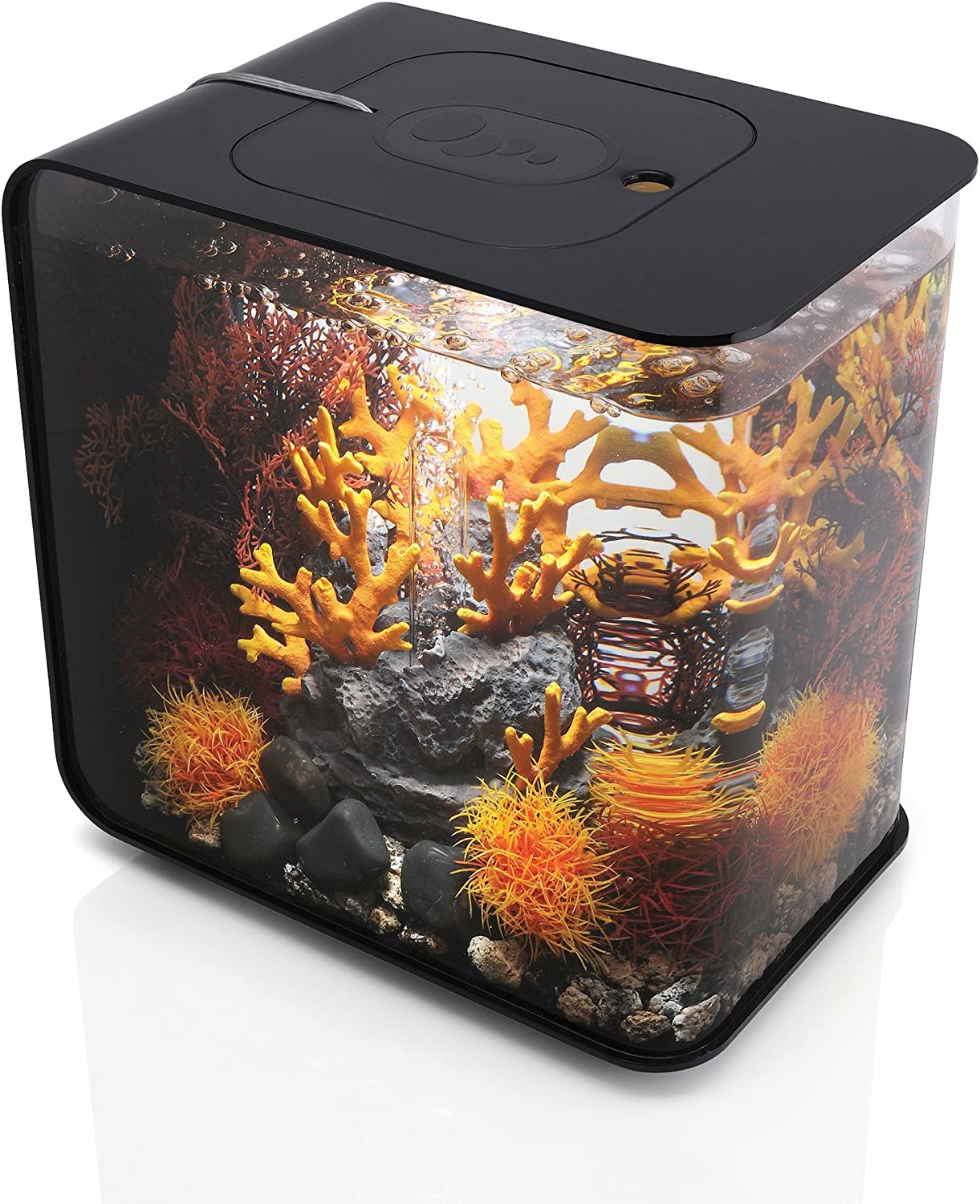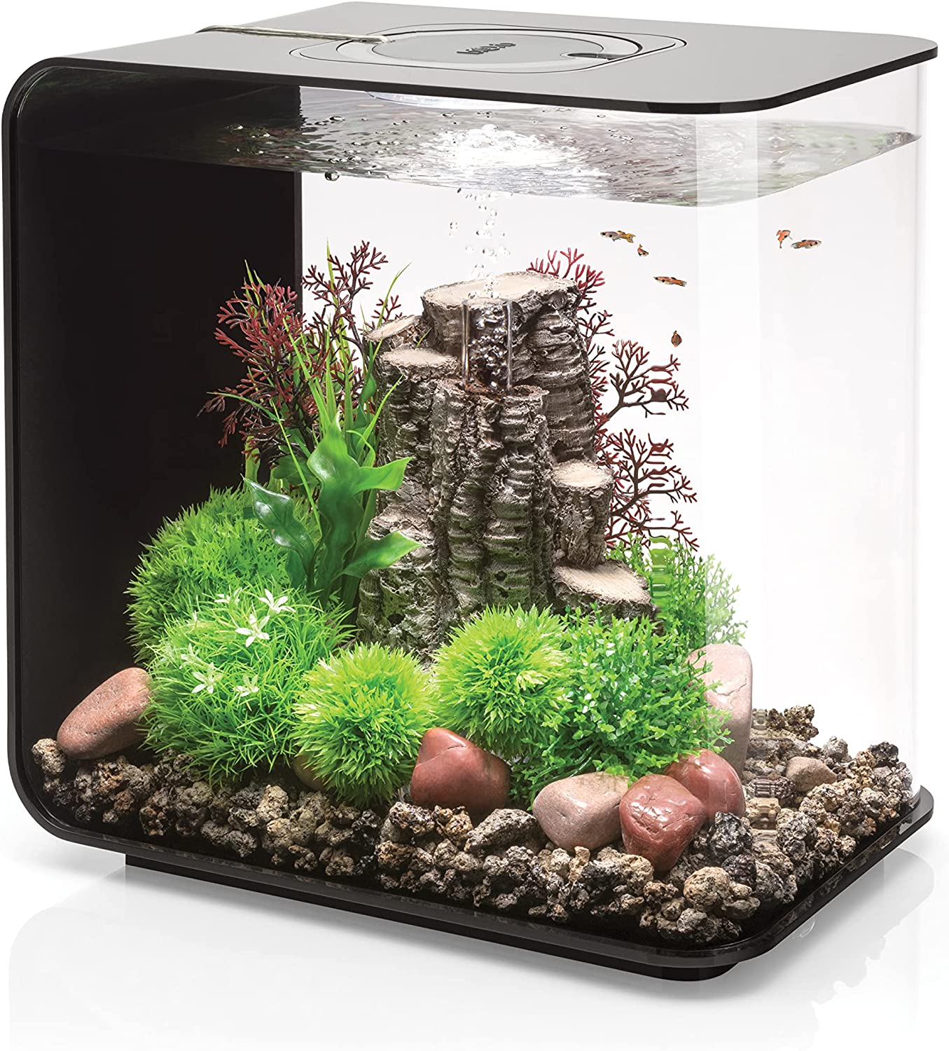 These breathtaking underwater worlds add a sense of joy and wonder to your home. With chic and minimalist design, a biOrb FLOW 30 aquarium makes it effortless for you to elevate any space. This 8-Gallon acrylic aquarium with three transparent sides is compact in size, so you can easily find a space to place and admire your biOrb. This biOrb FLOW has a black color trim and platform base that creates a stylish finished look to this unique aquarium. Everything you need to start your new hobby is included: low voltage pump, LED lighting, filtration, and manual. All biOrb aquariums are made from acrylic, which is 10 times stronger and 23% clearer than glass. Acrylic is also a good insulator, so you don't lose as much heat as you would with a glass aquarium. The standard white LED lighting will give your biOrb a classic ambiance. The lighting has an easy on and off switch. The 5-step Filtration ensures clear, healthy water with biological, mechanical and chemical filtration, water stabilization and oxygenation. Unlike most aquariums, a biOrb's filter is fitted at the bottom of the aquarium, because fish waste sinks. The ceramic media that surrounds the filter provides a large surface area for beneficial bacteria. With quick and easy set-up, you'll soon be setting your creativity free and decorating your biOrb with the endless combinations of biOrb aquarium decorations (sold separately). Additionally, biOrb aquariums are designed for easy maintenance and easy access to feed your fish. Depending on your choice of fish species, you may only need around 15 minutes of maintenance per month using the biOrb Service Kit (sold separately). The aquarium is backed by a 2-year warranty. Enjoy the priceless gift of nature's wonder in your home with biOrb.