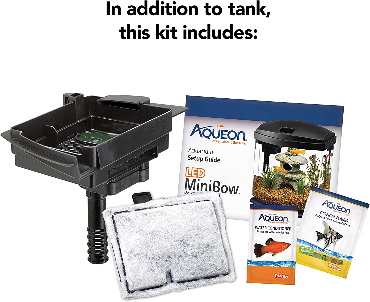 Aqueon LED Minibow Aquarium Starter Kit with LED Lighting, 5 Gallon, Black