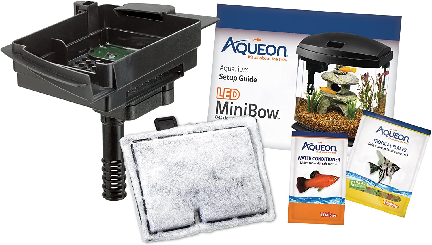 • Includes Aqueon QuietFlow filtration as well as food and water care samples