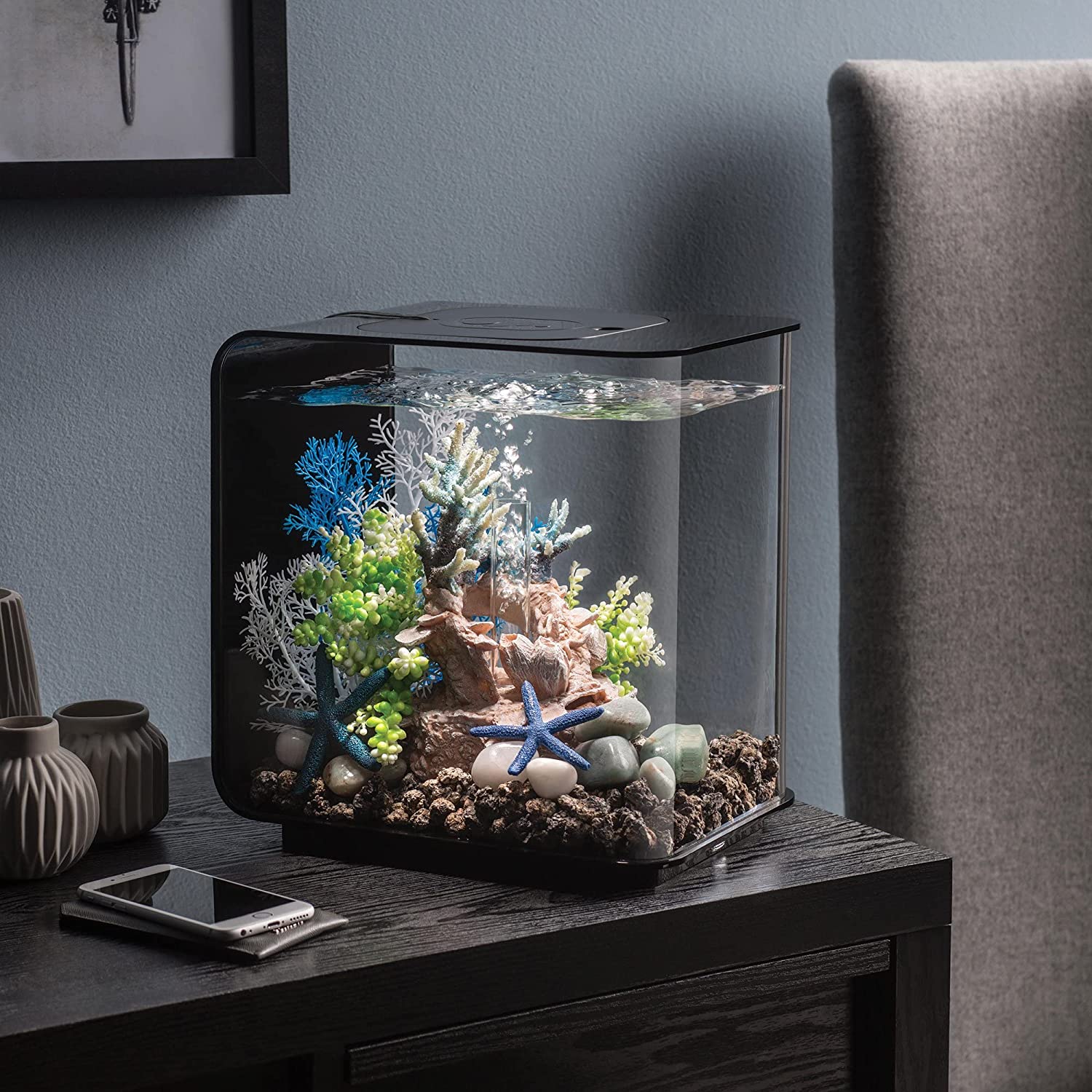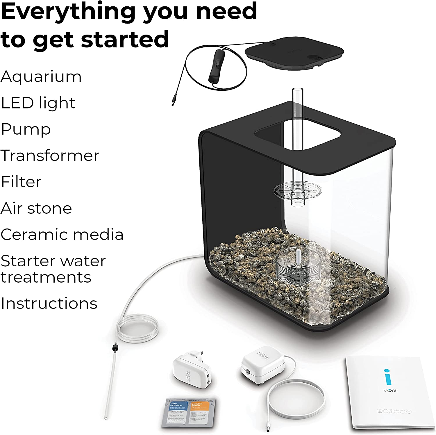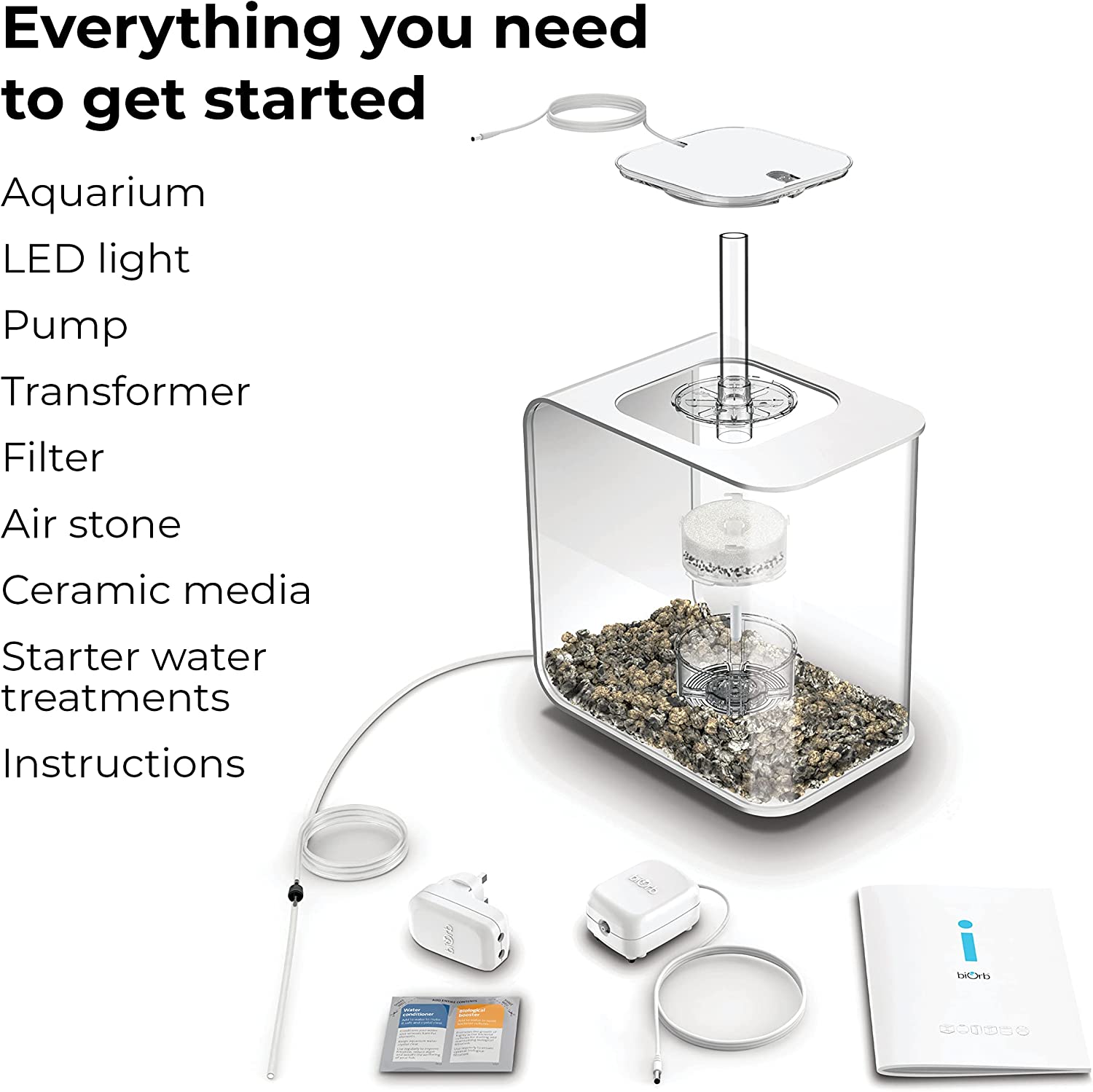 These breathtaking underwater worlds add a sense of joy and wonder to your home. With chic and minimalist design, a biOrb FLOW 15 aquarium makes it effortless for you to elevate any space. This 4-Gallon acrylic aquarium with three transparent sides is compact in size, so you can easily find a space to place and admire your biOrb. This biOrb FLOW has a white color trim and platform base that creates a stylish finished look to this unique aquarium. Everything you need to start your new hobby is included: low voltage pump, LED lighting, filtration, and manual. All biOrb aquariums are made from acrylic, which is 10 times stronger and 23% clearer than glass. Acrylic is also a good insulator, so you don't lose as much heat as you would with a glass aquarium. The standard white LED lighting will give your biOrb a classic ambiance. The lighting has an easy on and off switch. The 5-step Filtration ensures clear, healthy water with biological, mechanical and chemical filtration, water stabilization and oxygenation. Unlike most aquariums, a biOrb's filter is fitted at the bottom of the aquarium, because fish waste sinks. The ceramic media that surrounds the filter provides a large surface area for beneficial bacteria. With quick and easy set-up, you'll soon be setting your creativity free and decorating your biOrb with the endless combinations of biOrb aquarium decorations (sold separately). Additionally, biOrb aquariums are designed for easy maintenance and easy access to feed your fish. Depending on your choice of fish species, you may only need around 15 minutes of maintenance per month using the biOrb Service Kit (sold separately). The aquarium is backed by a 2-year warranty. Enjoy the priceless gift of nature's wonder in your home with biOrb.