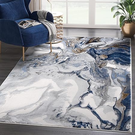 Abani Rugs Abstract Design 7'9" x 10'2" (8'x10') Bedroom Rug - Grey, Brown & Blue Modern Multi-Dimensional Non-Shedding Area Rug