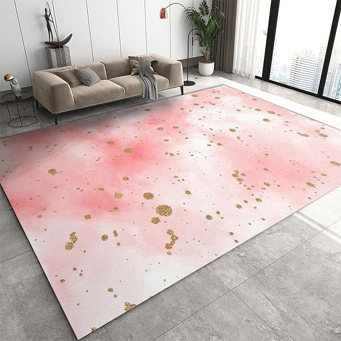 Area Rug 8x10 Pink White Gradient Dreamy Girls Room Rugs, Geometry Gold Foil Spots Abstract Area Rug, Washable Non Slip Area Rug, Apply to Living Room Bedroom Bathroom Office