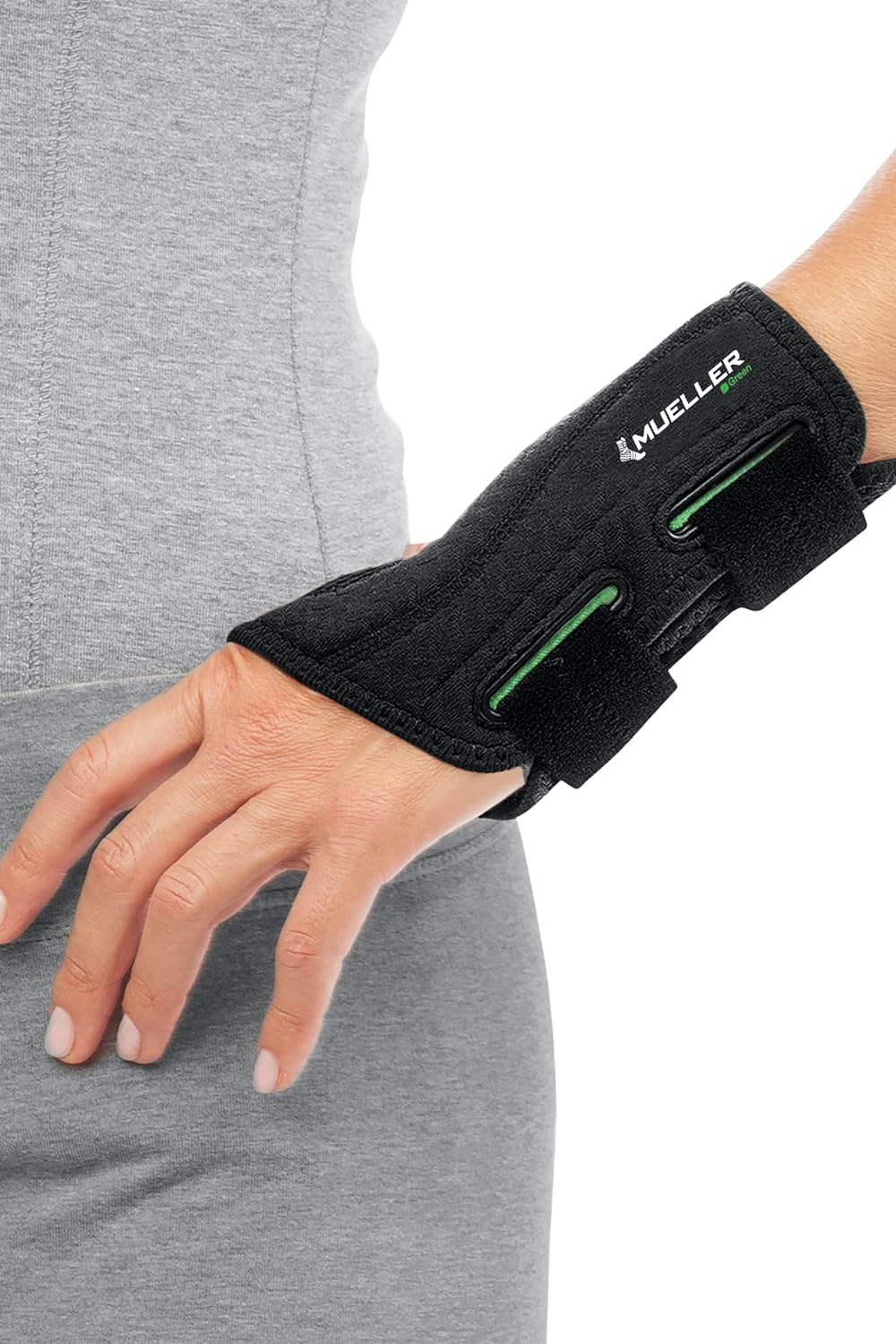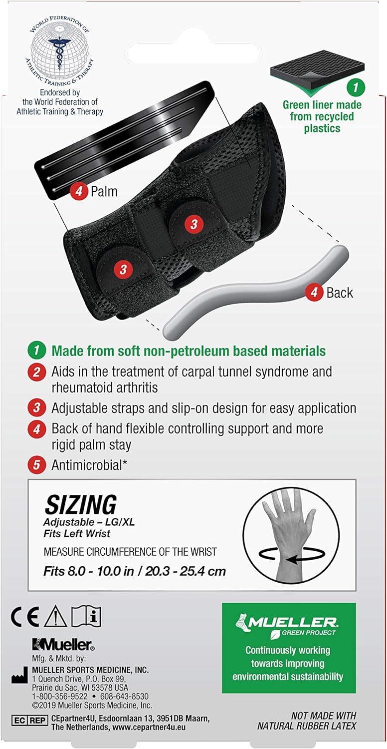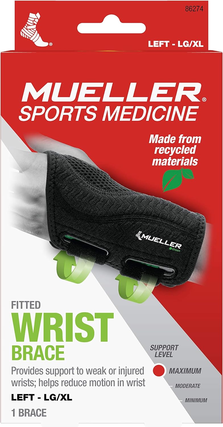 Mueller Green Fitted Wrist Brace, Black, Left Hand, Small/Medium
