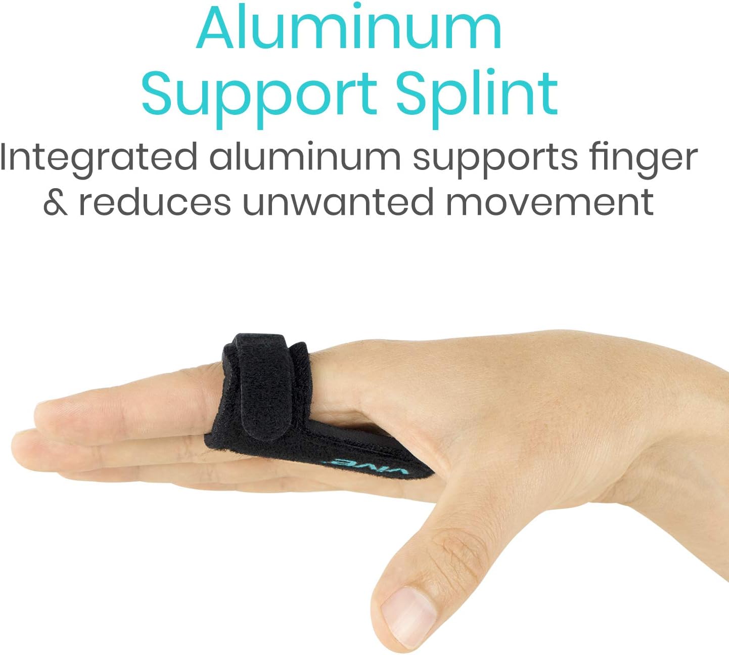 • BUILT IN ALUMINUM SUPPORT: Lightweight and curved for superior support, the splint features an integrated, semi-ring aluminum brace. The rigid aluminum brace immobilizes the affected finger joint to guard tendons from catching and the joint from bending to promote healing and reduce pain and discomfort.