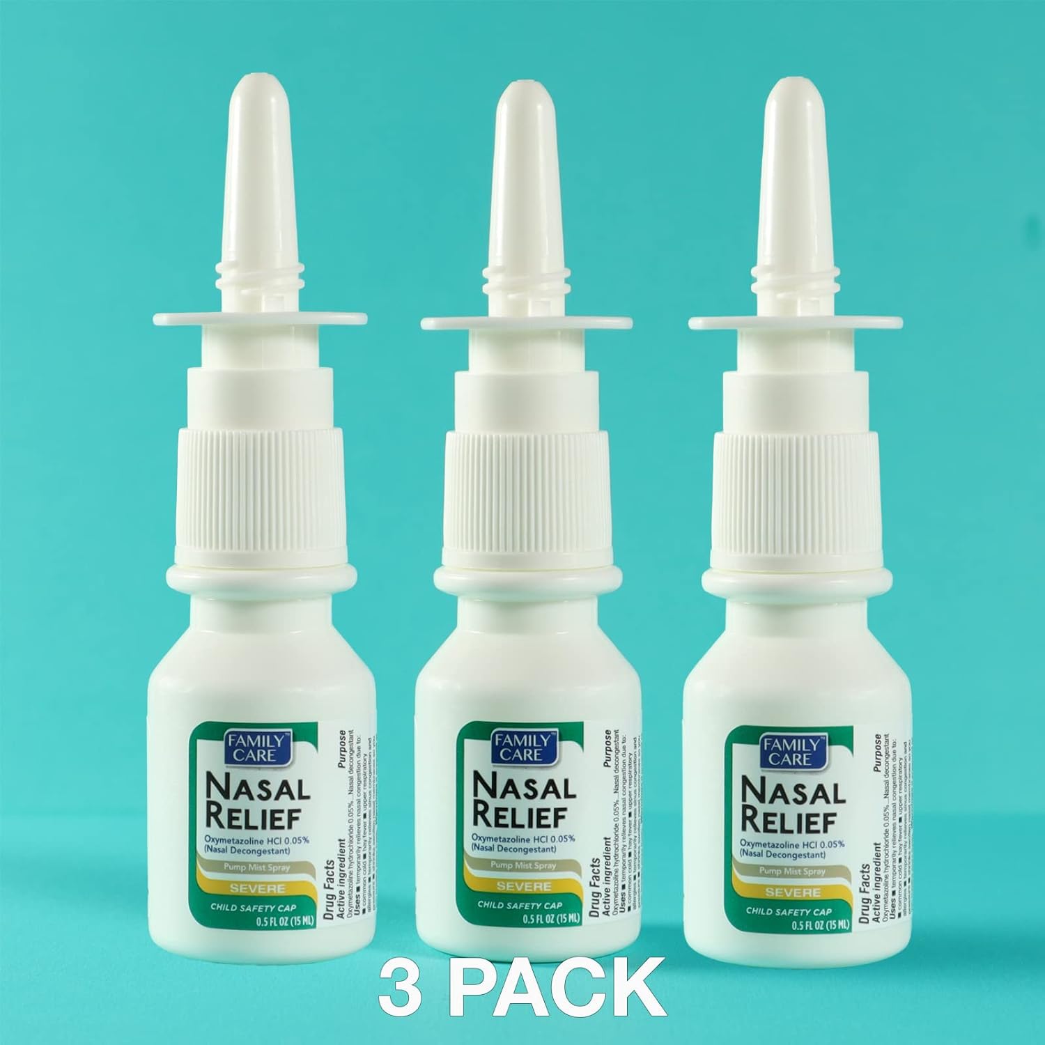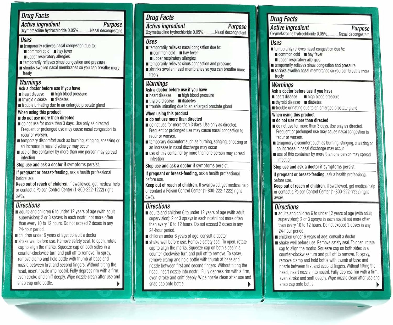 Nasal Relief Spray, Pump Mist, Anti-drip, Severe Congestion, (Oxymetazoline HCI ) 12 Hours, 3 Pack. by Assured