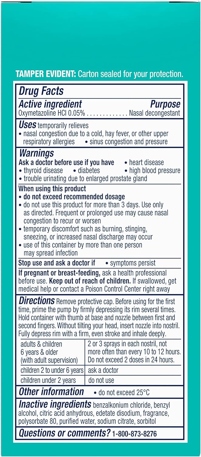 The Power of Vicks - the world’s #1 selling cough and cold brand! Get instant, 12-hour relief from nasal congestion and sinus pressure with Vicks Sinex Severe! Relieves sinus pressure and nasal congestion by reducing swelling in the sinuses. This decongestant nasal spray targets congestion where you need it most, your nose! With a powerful decongestant medicine called oxymetazoline, this product is one of the best options for treating severe sinus symptoms caused by a cold or seasonal allergy spell. The ultra fine mist spray is designed to deliver the medicine gently with a touch of soothing Vicks Vapors in every spray! Try Vicks Sinex Severe when you need all day or all night relief because it works for up to 12 hours. For adults and children 6 years and older (with adult supervision): 2 or 3 sprays in each nostril, not more often than every 10-12 hours. Do not exceed 2 doses in 24 hours. Not intended for daily use, read each label and use only as directed. Call your doctor if you suspect a sinus infection, sinusitus, or other more serious symptoms.
