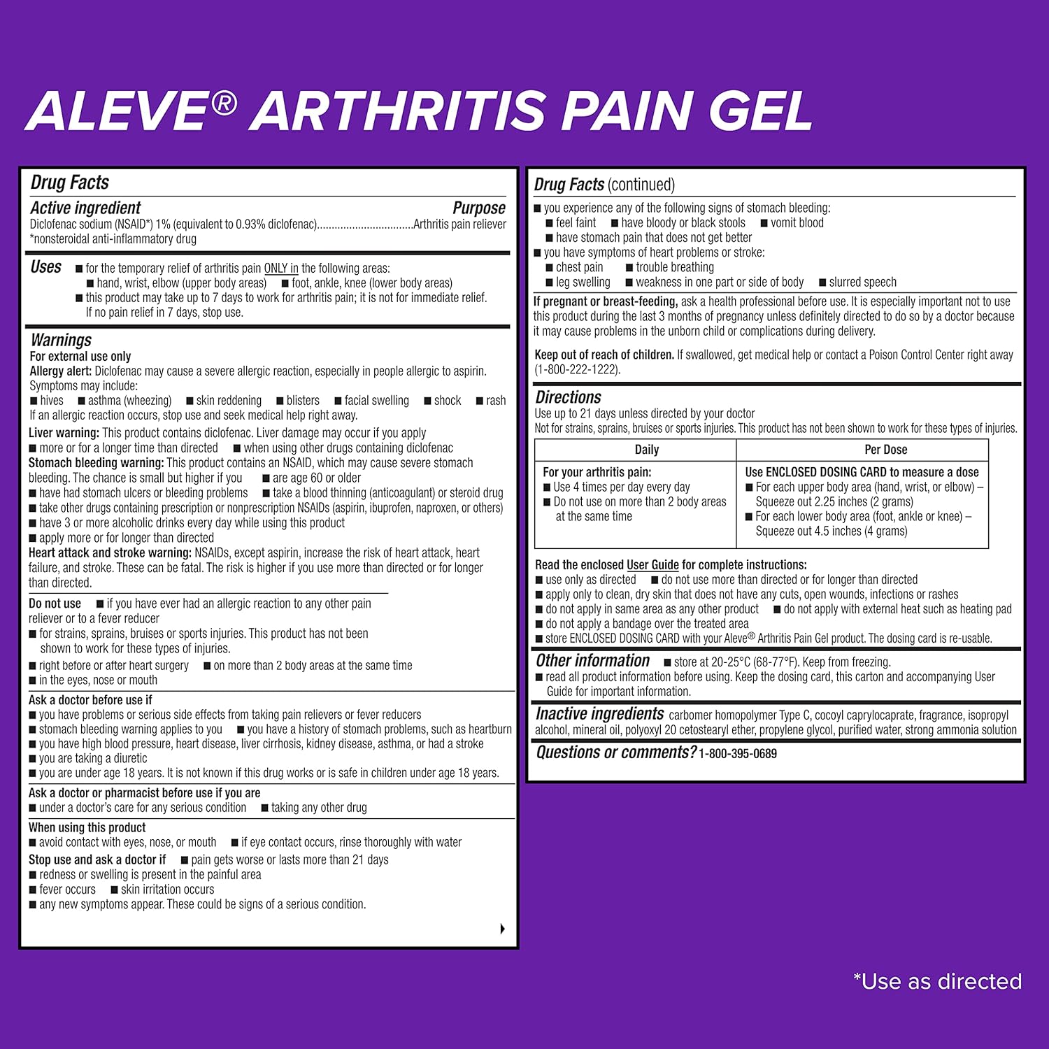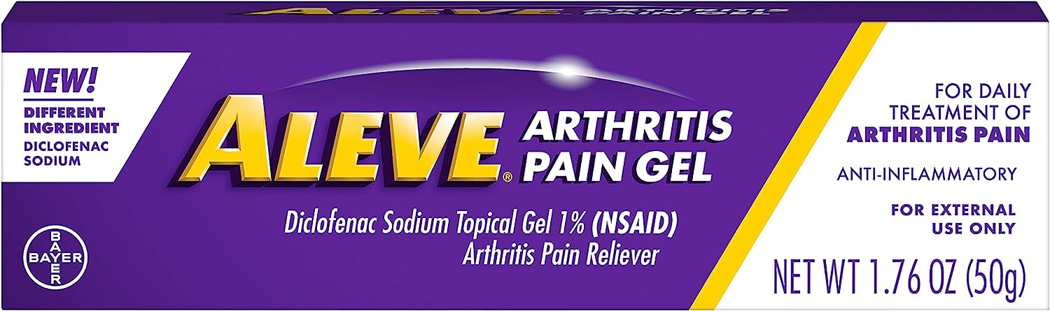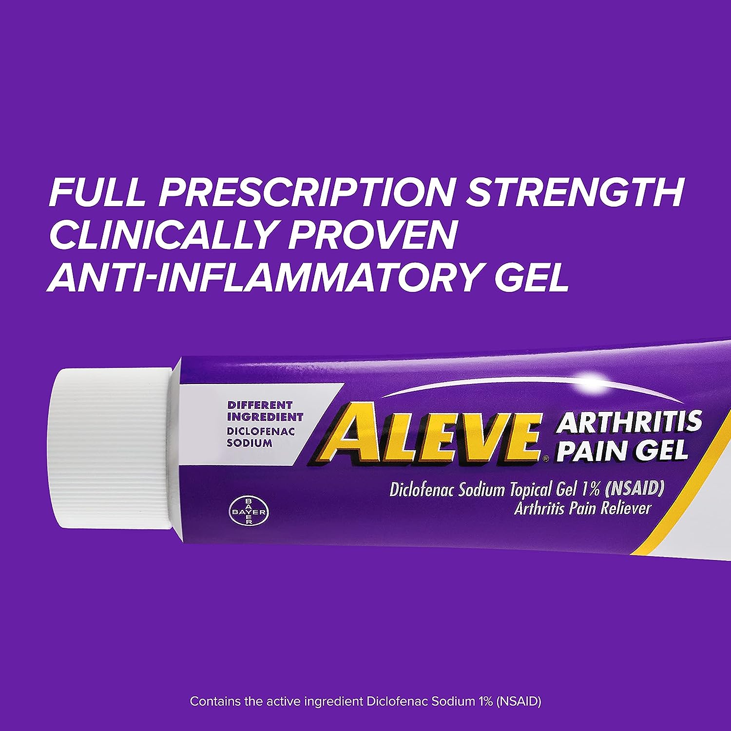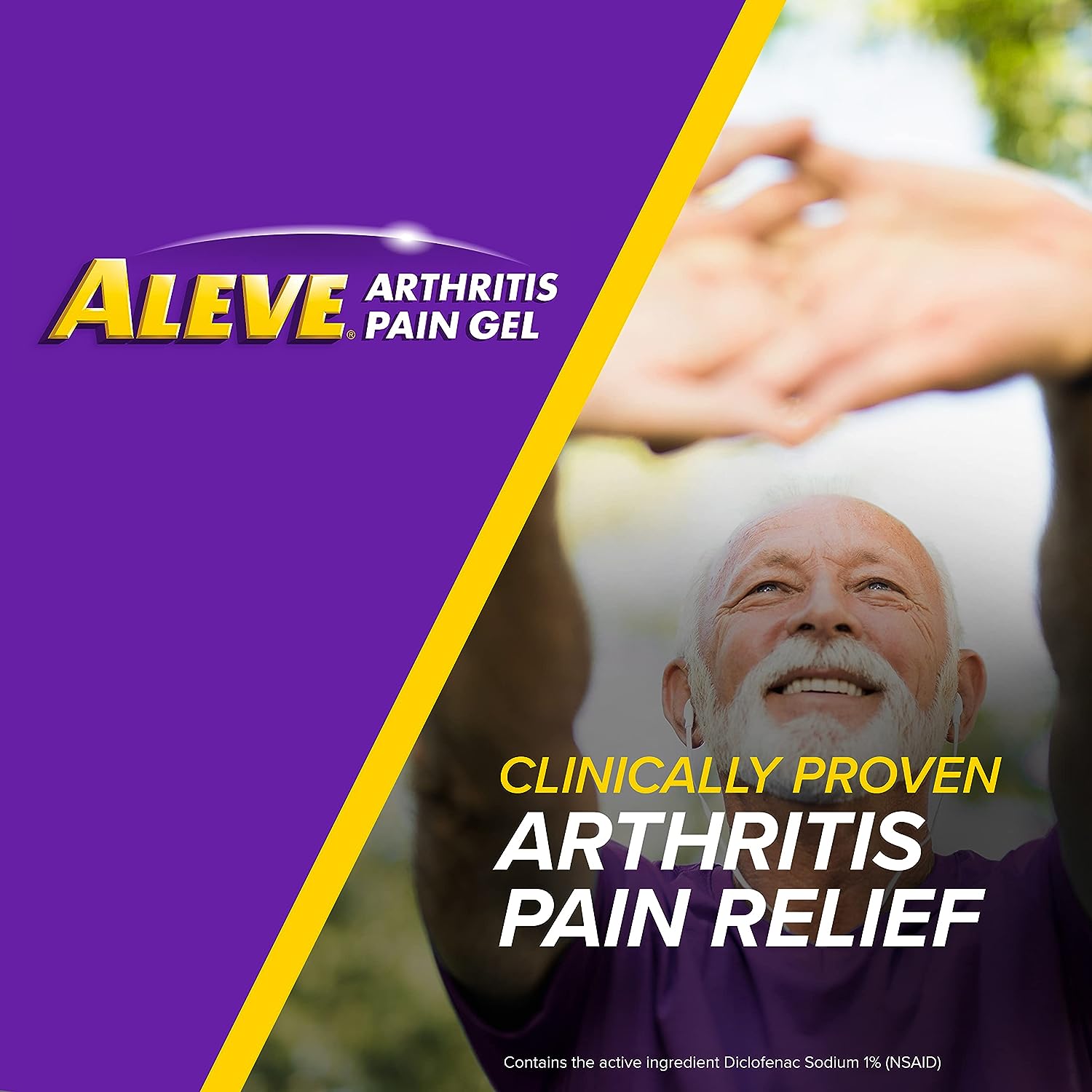 New Aleve® Arthritis Pain Gel is made with prescription strength Diclofenac Sodium Gel 1% and is a non-steroidal anti-inflammatory drug (NSAID*) that is clinically proven to relieve arthritis pain. This medicated gel is used 4 times per day (for up to 21 days) so you can get back to doing what you love without arthritis pain holding you back. For the temporary relief of arthritis pain ONLY in the following areas: hand, wrist, elbow (upper body areas) and foot, ankle, knee (lower body areas). For external use only.