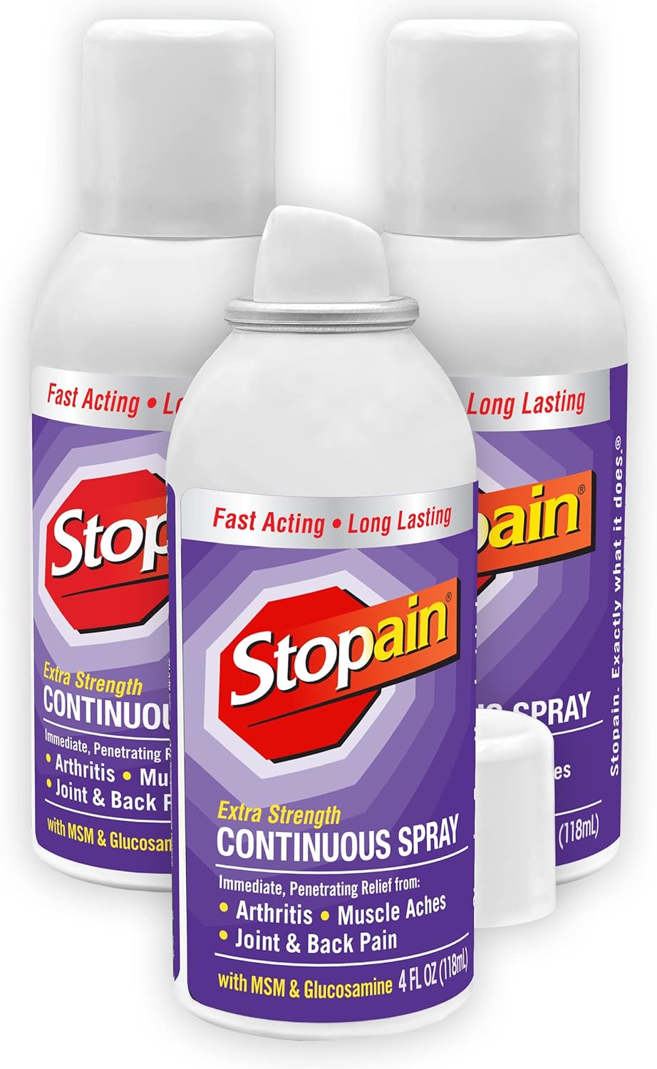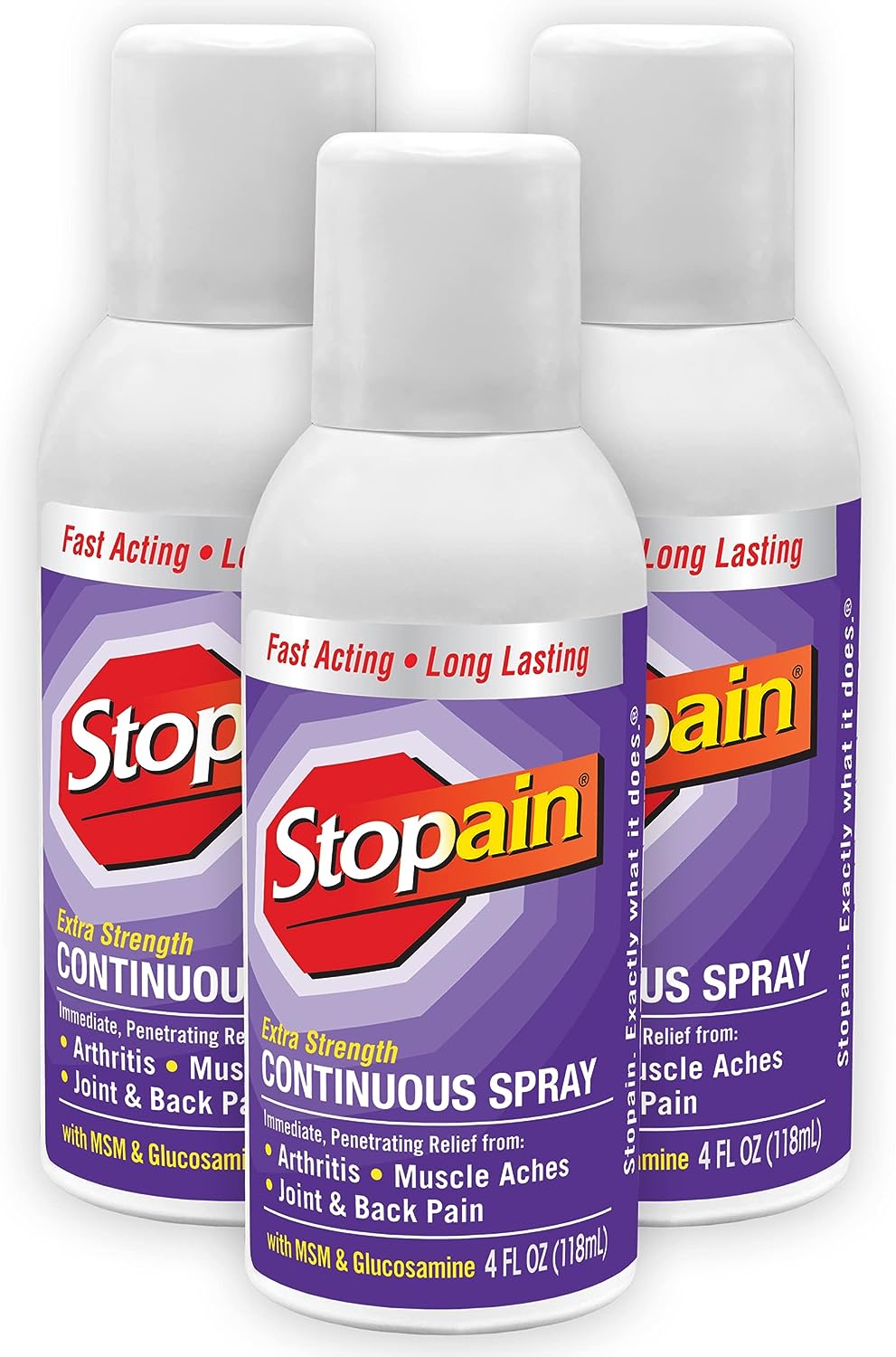 Stopain Pain Relief Spray, 4oz (3 Pack) USA Made, Max Strength Fast Acting with MSM, Glucosamine, Menthol for Arthritis, Lower Back, Knee, Neck, HSA FSA Approved Topical Analgesic Products