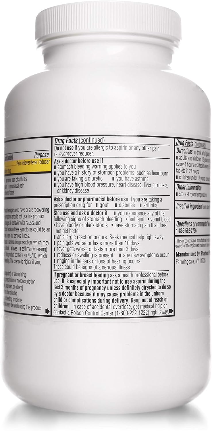 Regular Strength Aspirin 325 mg for people who are on a daily aspirin regimen. Can also be used to relieve minor pains. Generic low dose aspirin tablets, 1000 tablets per bottle.