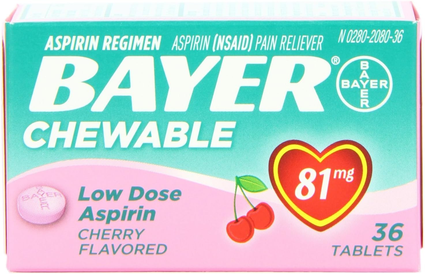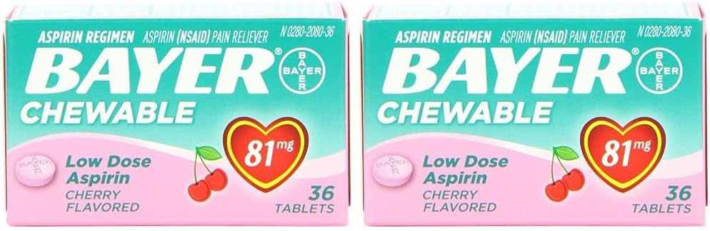 Bayer Chewable Low Dose Aspirin Cherry , 36 Count (Pack of 3)