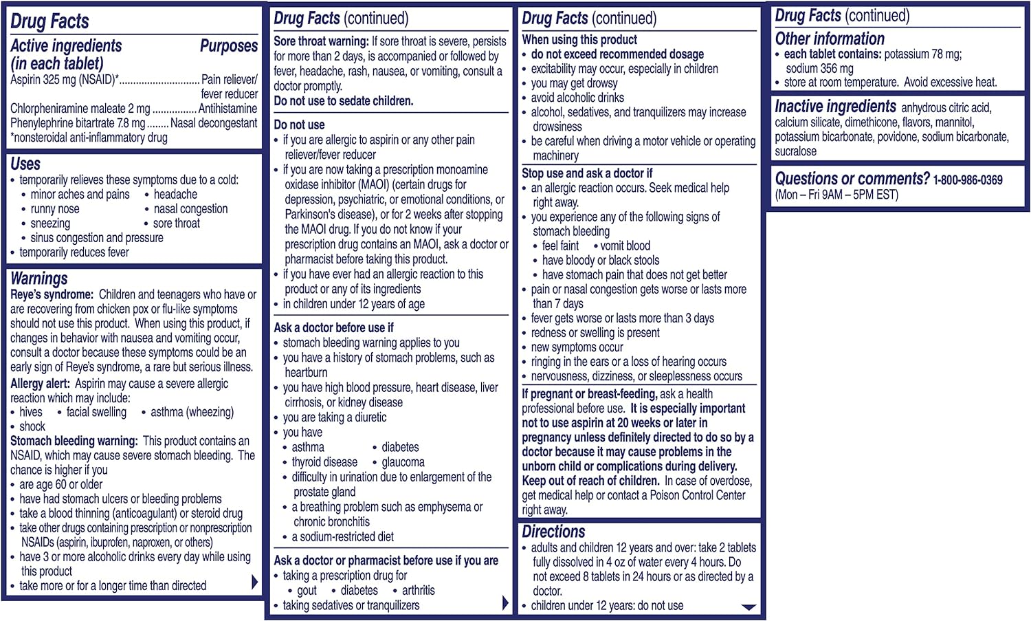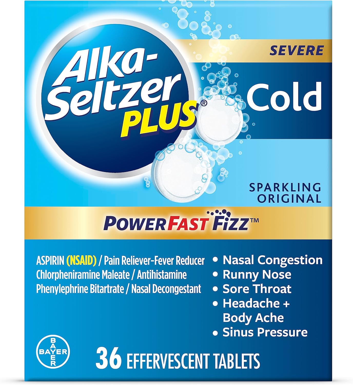ALKA-SELTZER PLUS Severe Cold Sparkling Original POWERFAST Fizz EFFERVESCENT Tablets - your fast and effective solution for severe cold symptoms. With its powerful formula, these effervescent cold tablets work quickly to provide relief from cold symptoms such as congestion, headache, fever, and sore throat, also serving as a great dry cough medicine for adults. The unique effervescence of the tablets creates a refreshing fizz that makes taking medicine an enjoyable experience. Each tablet contains a blend of pain relievers, fever reducers, and nasal decongestants to provide multi-symptom cold relief. Whether you're at home or on-the-go, the travel-size packaging makes it easy to take with you wherever you need to go. Experience relief from severe cold symptoms with ALKA-SELTZER PLUS Severe Cold Sparkling Original POWERFAST Fizz EFFERVESCENT Tablets - the perfect cold remedy to keep on hand during cold and flu season.