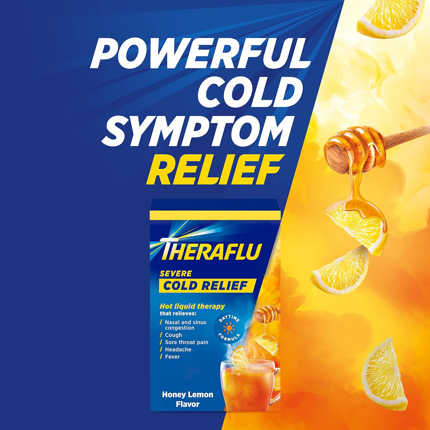 Theraflu Daytime Severe Cold Relief Powder, Cold and Cough Medicine Powder Packets, Honey Lemon Flavors - 6 Packets