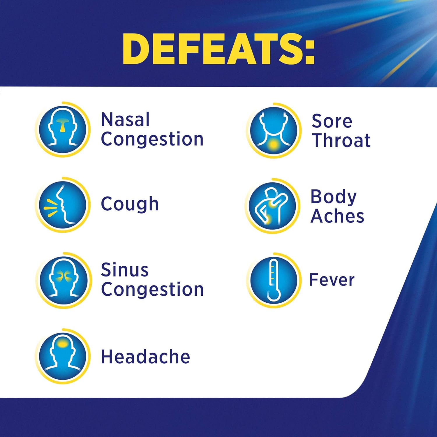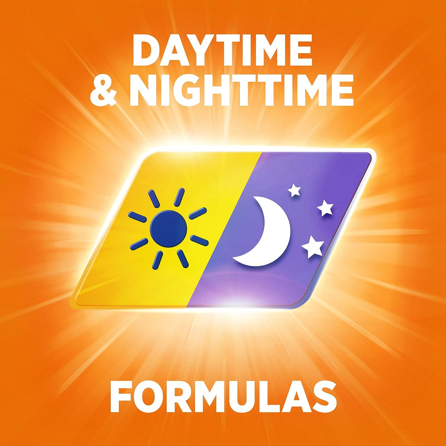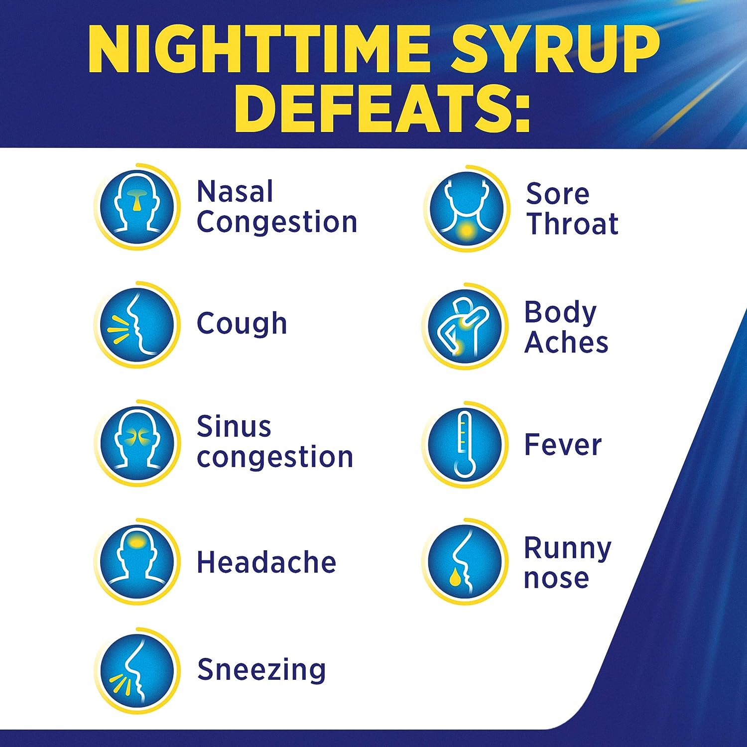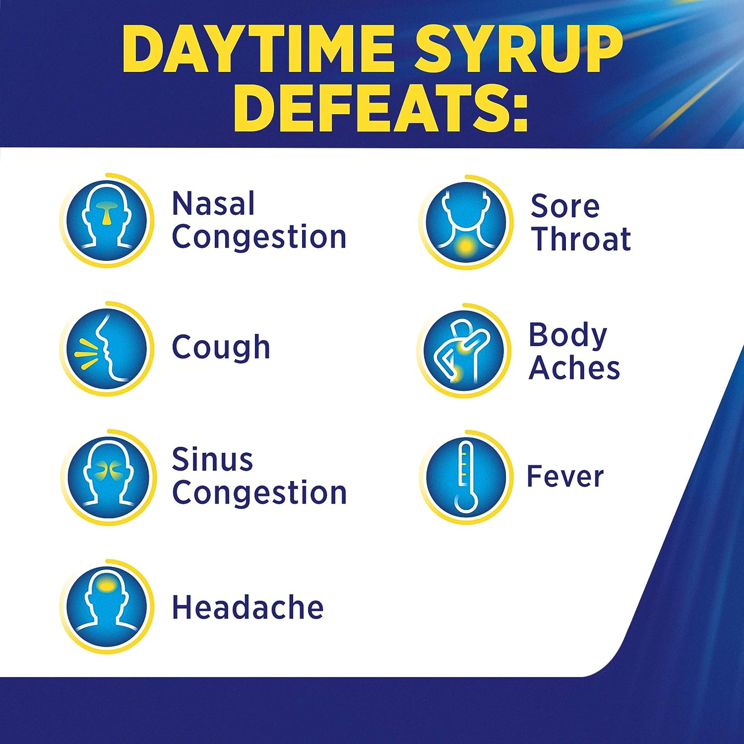 Theraflu ExpressMax Severe Cold and Cough Daytime and Nighttime Cold Medicine delivers serious cold and cough relief with each power-packed dose. Featuring a tasty berry flavor, this nighttime and daytime cough medicine for adults contains prescription-free, maximum strength medications that provide a unique warming sensation with each dose. Theraflu daytime and nighttime cough syrup for adults helps relieve your worst cold symptoms, like headache and body aches, sore throat, nasal congestion, fever and cough. In addition, Theraflu nighttime cold medicine relieves runny nose and sneezing so you can rest easy. Both Theraflu ExpressMax nighttime and daytime cold medicine for adults contain maximum strength medications that deliver fast cold symptom relief, including a nasal decongestant, fever reducer and pain reliever and cough suppressant. Adults and children 12 years and older may take 30mL of either daytime or nighttime severe cough and cold medicine every four hours as needed. Say goodbye to your cold and flu symptoms for good, and get back on your feet with the power of daytime and nighttime Theraflu ExpressMax.