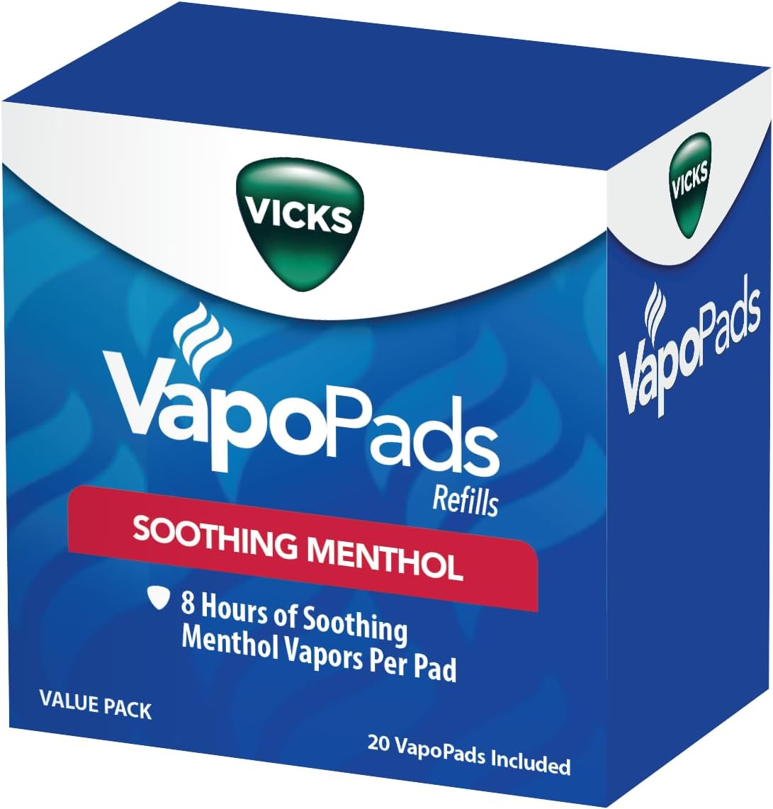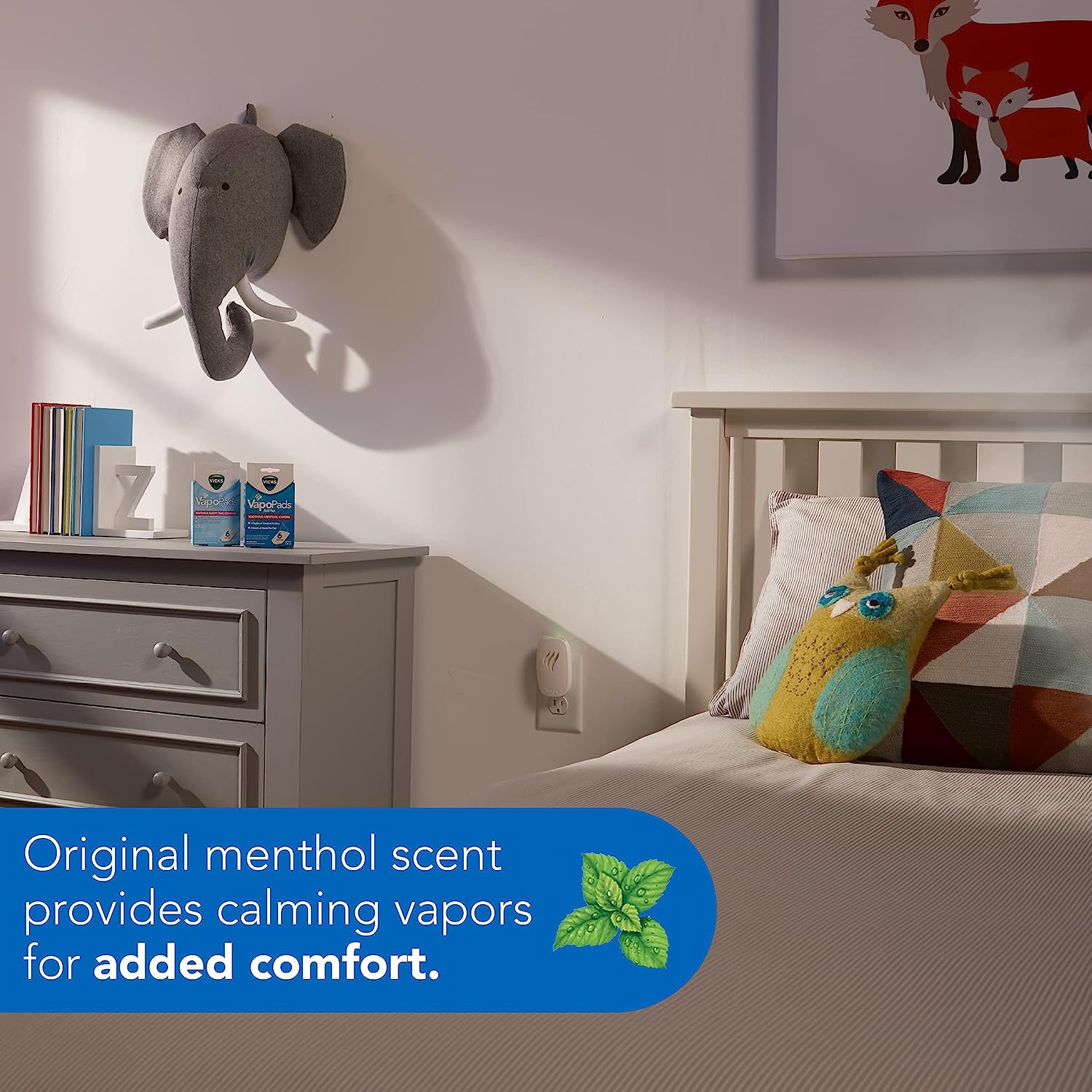 Get quick and easy relief from cough, congestion and more with the addition of Vicks VapoPads to your vaporizer or humidifier. These non-medicated refill pads for Vicks Humidifiers, Vaporizers, Waterless Vaporizers, Inhalers and Plug-Ins offer relief from cold, cough and flu with soothing menthol vapors. Each vapor pad provides eight hours of comfort with Vicks plug-in & waterless vaporizers, inhalers and humidifiers that use scent pads, so you can breathe easier and sleep better! They’re easy to use and are a no mess refill. These vapor pads are designed for use with Vicks Waterless Vaporizers, Waterless Plug-Ins, Humidifiers and Vaporizers, including model numbers: V1200 Series, V1800 Series, V1900 Series, V150 Series, V1300 Series, V5100NS Series, V3900 Series, V3700 Series, V1700 Series, V1750 Series, V1750JUV Series, VUL520W, VEV320, VUL575, V4600 Series, VWM845, VIH200, V5100NS, V3900, V3700, V1700, V1750, V1750JUV, VUL520W, VUL520P, VEV320, VUL575, VIH200, and V4600. At Vicks, we believe that everyone deserves a touch of care. Our line of humidifiers, steam inhalers and vaporizers help you breathe better and sleep more comfortably, wherever you are.