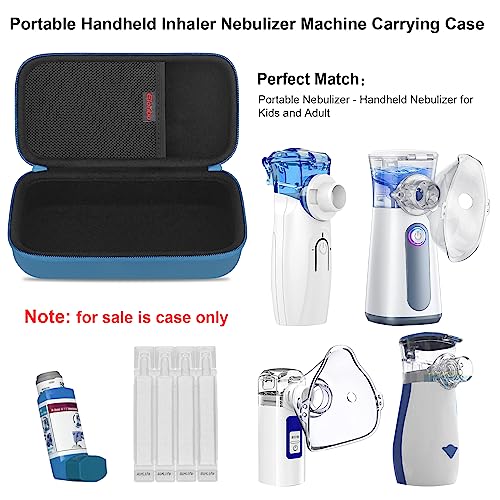 Details: This portable nebulizer machine carrying case, inhaler holder external dimensions: 8.73 x 4.62 x 2.65 inches, internal dimensions: 8 x 3.95 x 2.2 inches. (L x W x H). perfectly fit portable nebuliser handheld mesh atomizer machine for home daily use, personal inhalers nebulizador for breathing problems. This rugged portable nebulizer machine protective travel case, asthma inhaler case is made of PU leather hard EVA material and fluffy fabric lining, shockproof waterproof dust protection anti-static. the hard handheld inhaler nebulizer protective carry case is very suitable to provide travel protection for your nebulizer machine for adults and kids. This portable asthma inhaler holder comes with extra interior zipper mesh pocket, which can fit your USB cable and batteries or mask. the nebulizer machine pocket, nebulizer case bag has a double zipper design, can be opened and closed freely, provides easy access to your handheld nebulizer personal inhalers asthma inhaler spacer. The stylish handheld inhaler nebulizer carrying storage holder bag is featured with is featured with a elastic bands, can fix portable nebulizer rechargeable machine with case tightly and avoid shake at will. protects your electric nebulizer and asthma inhaler spacer from any movement, The ultra-portable electric nebulizer case, asthma spacer kids case lightweight and compact, easy to put in backpacks, shoulder bag and luggage, ideal for daily use and travel. This well-designed advanced nebulizer case, asthma inhaler spacer holder has a very comfortable handle that allows for convenient portability on the go. suitable for traveling, hiking, camping,or storing your portable nebuliser handheld mesh atomizer machine when not in use.