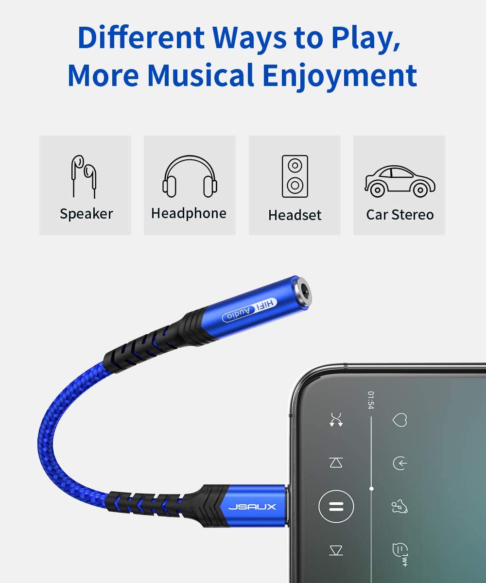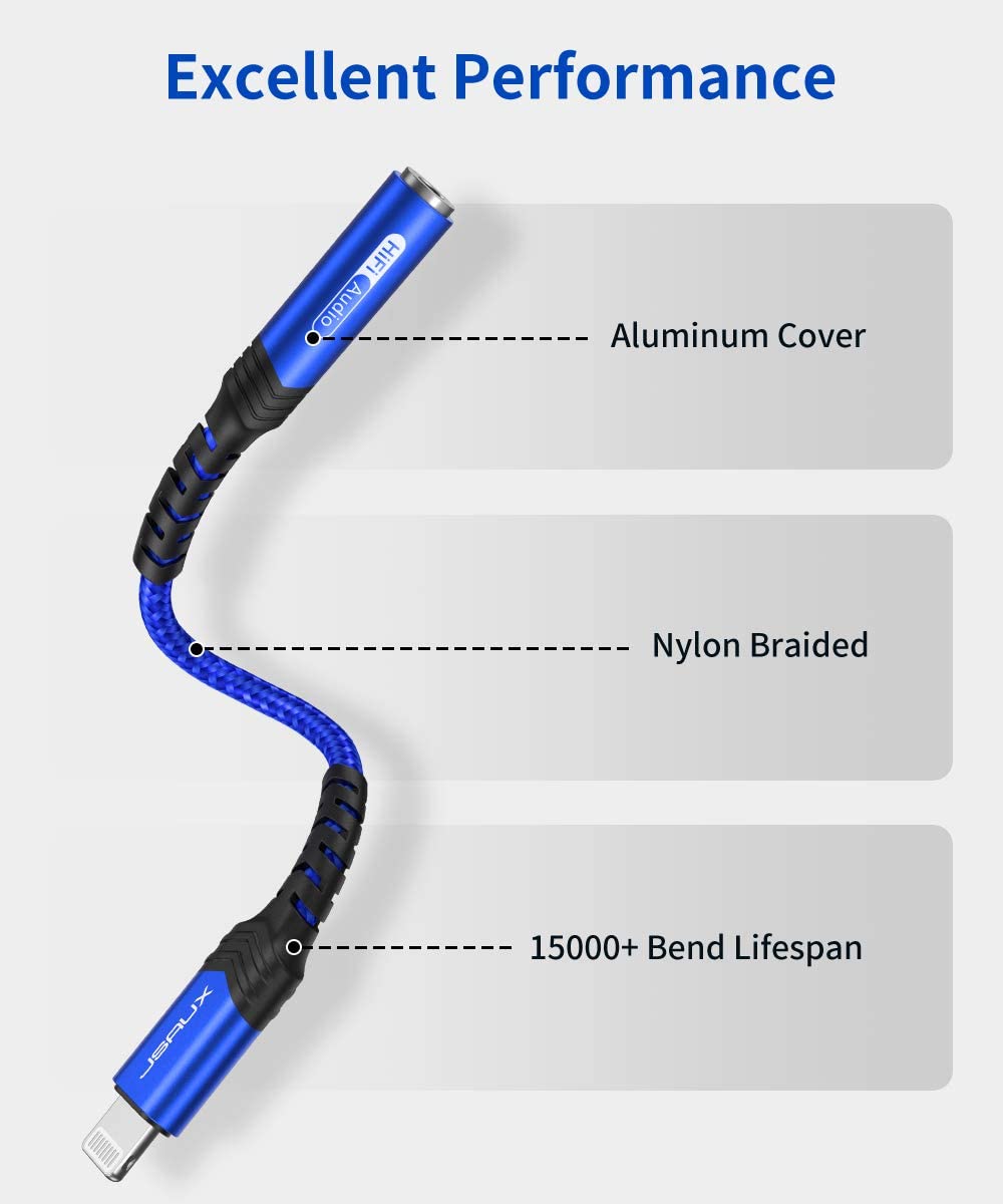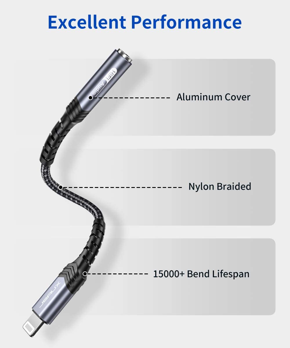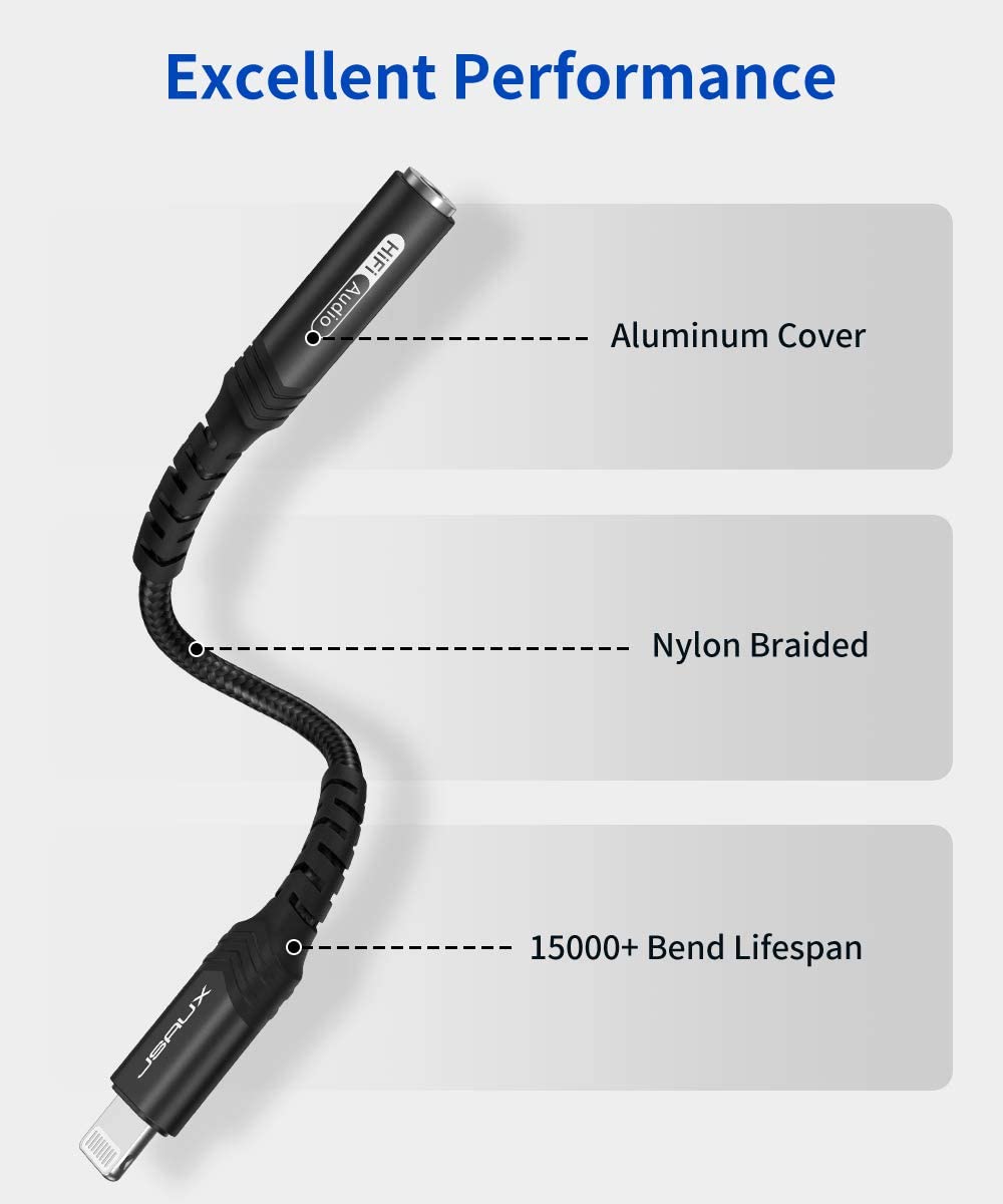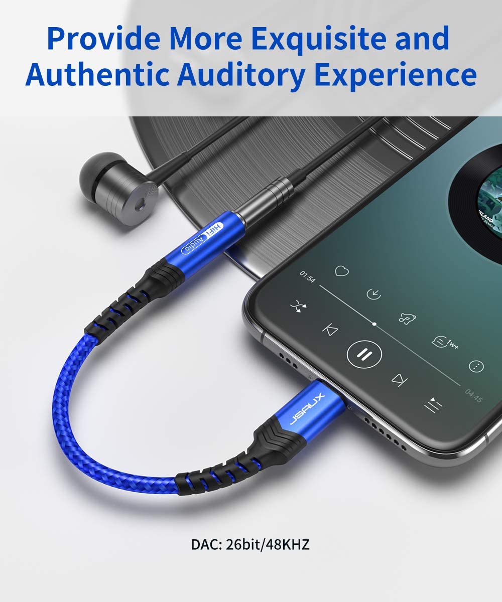 • 【Super Sound】: JSAUX Lightning to 3.5mm Headphone Adapter, sampling rate up to 48KHz and filter out noise. Provides a clear with no breaks quality sound.