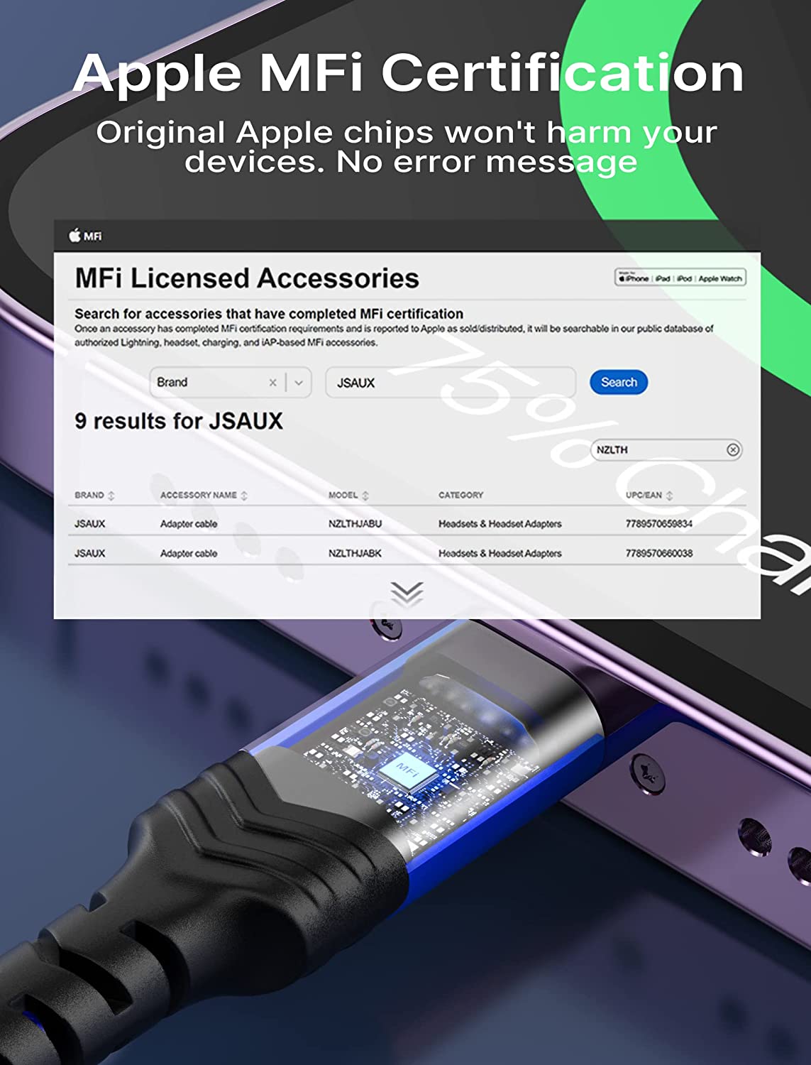 • 【Apple MFi Certified】: JSAUX Lightning to 3.5mm Adapter has completed APPLE MFi certification requirements. The Apple MFi certification and JSAUX strict quality testing ensure completely and securely connect with your Apple devices.