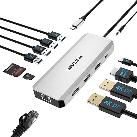 Laptop Docking Station, 12 in 1 Triple Display USB C Hub for Windows with Dual DP, HDMI, 100W PD Charger, Gigabit Ethernet, USB3.0/2.0 Ports, SD/TF Card Reader, Mic/Audio for Lenovo HP Dell