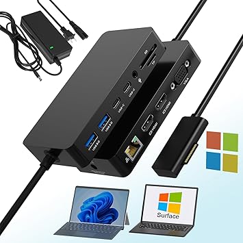 Microsoft Surface Pro Docking Station Triple Display Dual HDMI+VGA, 12 in 1 Surface Dock with Ethernet SD/TF Audio 4*USB, Dock for Surface pro 10/9/8/X/7/6/5/4, Surface Laptop 6/5/4/3/2, Surface Book