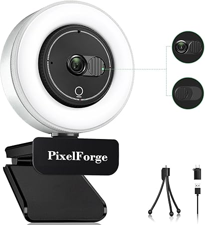 2K Webcam for PC with Microphone & Light & Privacy Cover, Web Camera for Desktop Computer/Laptop/Monitor/Mac, USB Streaming Camera for Zoom/Skype/Teams/Video Calling/Studying and Conference