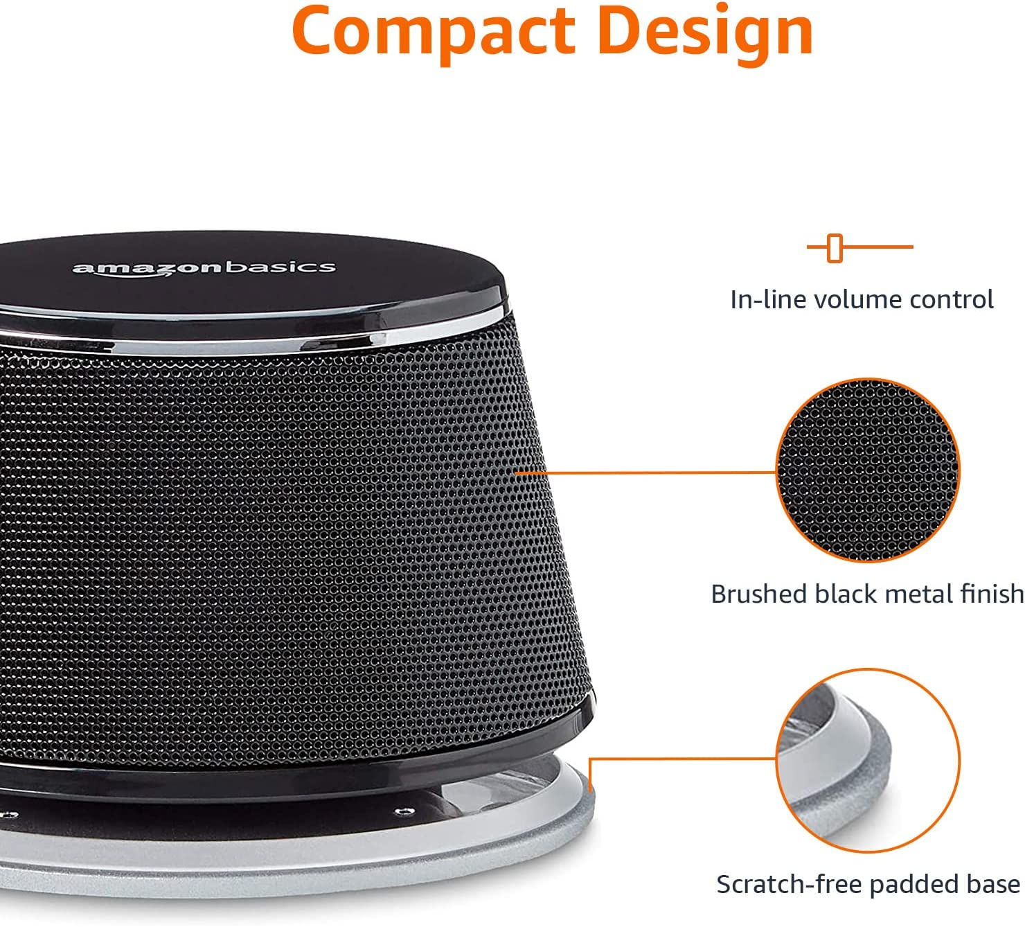 Amazon Basics USB Plug-n-Play Computer Speakers for PC or Laptop, Black - Set of 2
