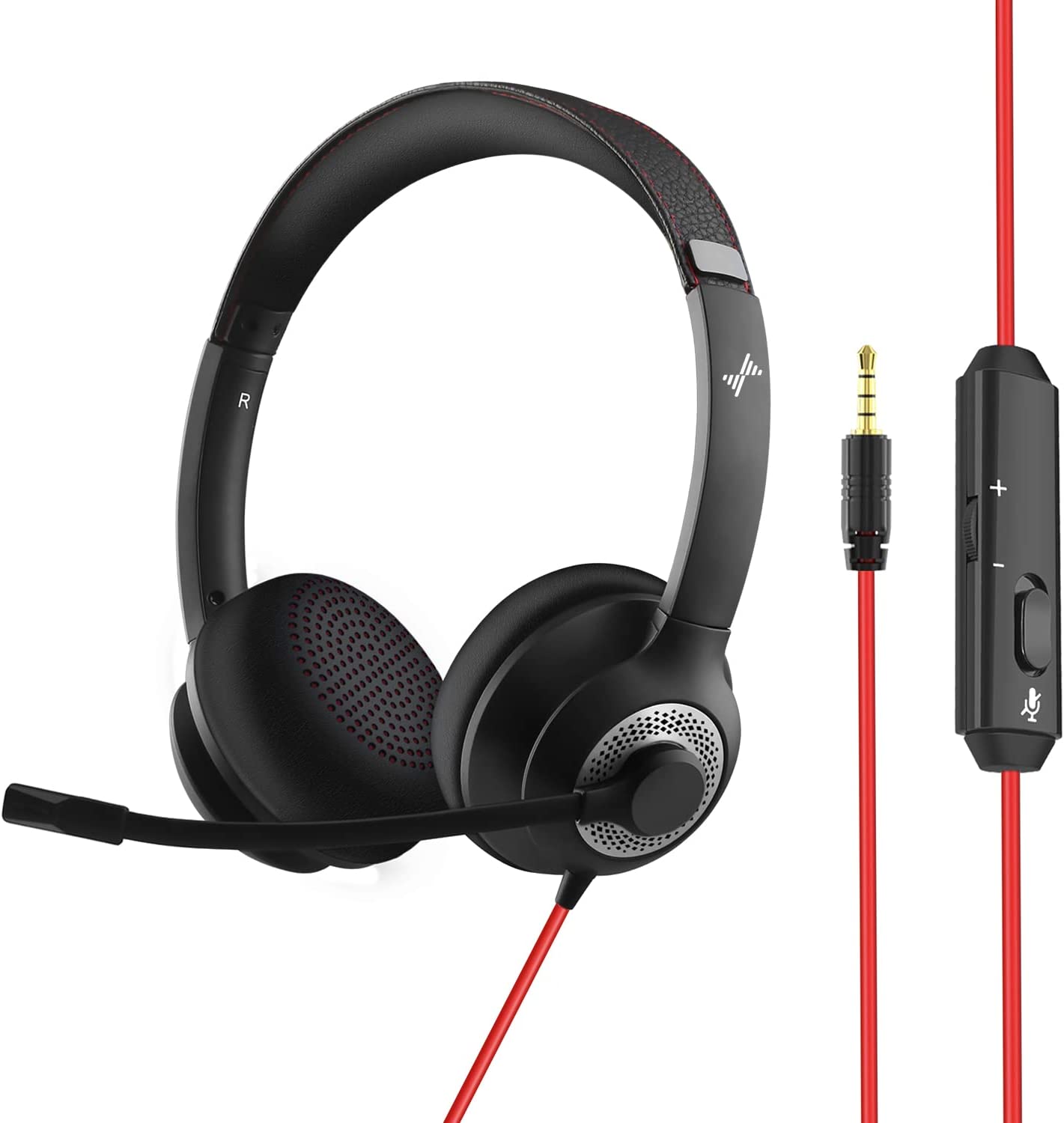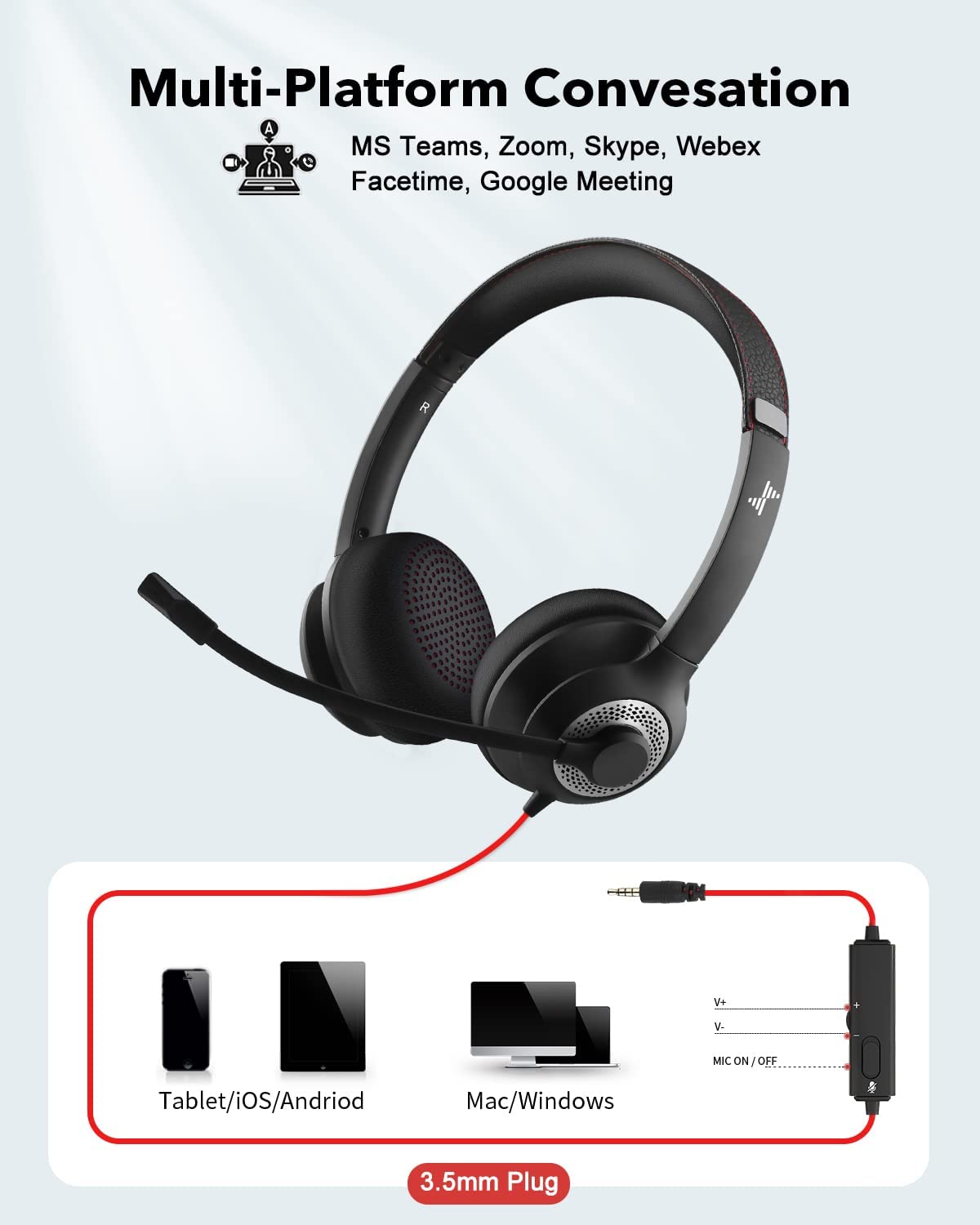 • ✅【USB/3.5mm Connection】 The headphone is designed for multiple use, 3.5mm audio cable with USB In-line audio volume control (cord length 5+4 feet),with mic mute &indicators /speaker mute.Compatible with PC/Tablet/Mac/iOS/laptop /Android phone and other devices."