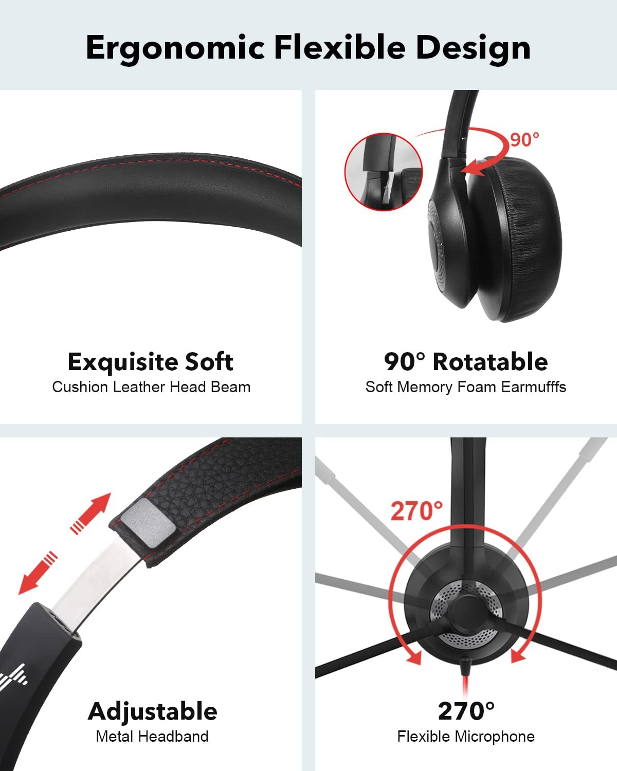 • ✅【Enhanced sound performance & 40mm audio driver】:Corded phone headset with built-in audio sound card, Eaglend sound lab tested thousands of times for your daily conversation/music/movie/gaming, bringing you extra clear and bass for pleasant experience.