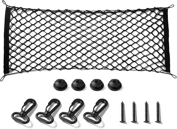 Amiss Cargo Net Stretchable, Car Exterior Accessories, Adjustable Elastic Trunk Storage Net with Hook for SUVs, Cars and Trucks (35.4x15.8 Inch)