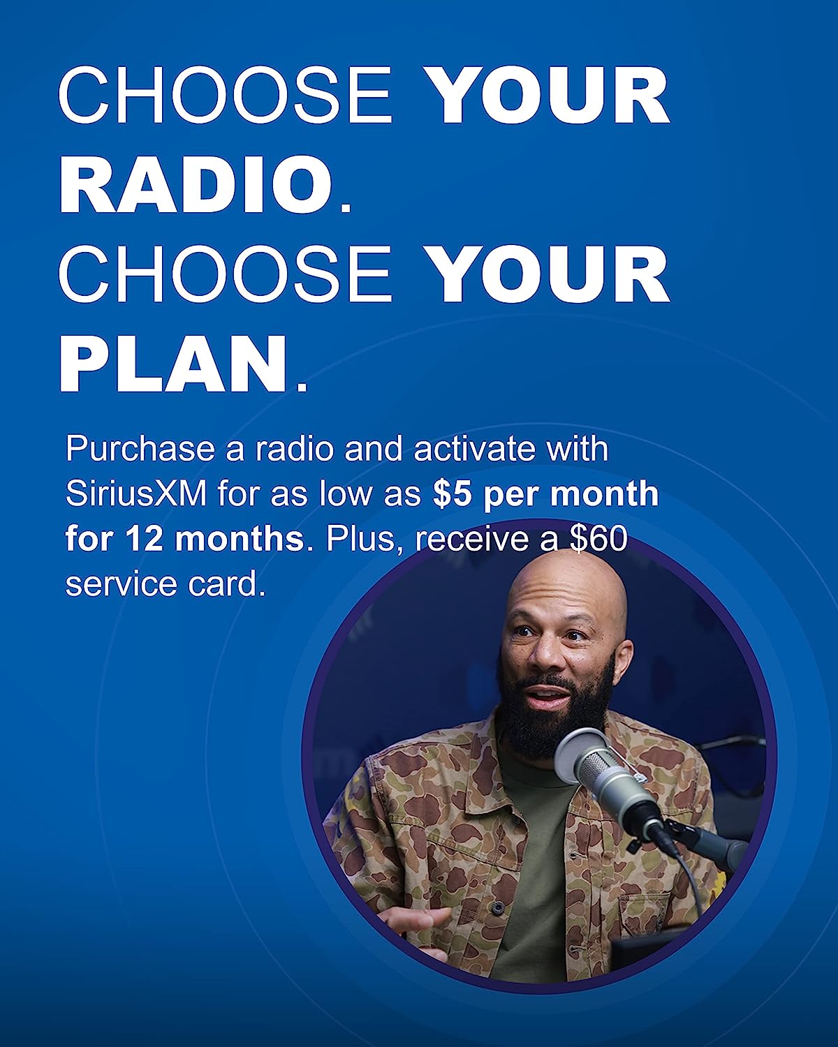 • SUBSCRIPTION - Experience all SiriusXM has to offer for as low as $5 per month plus get a $60 Service Card with activation