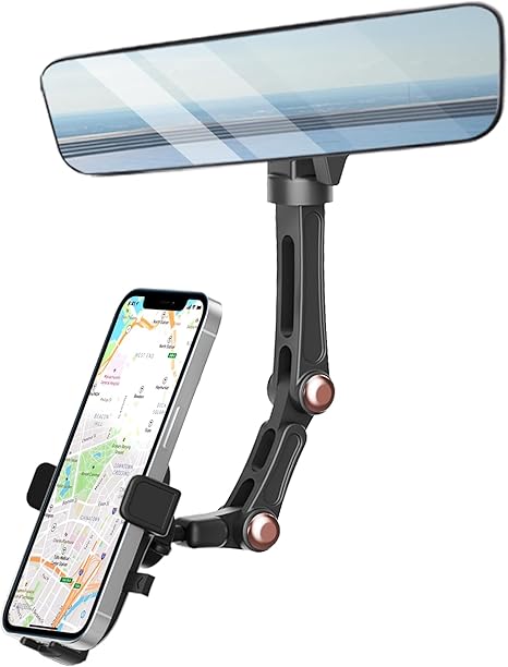 Karmus Rearview Mirror Phone Holder for Car, Rear View Mirror Phone Holder, Rotatable and Retractable Car Phone Holder Mount, Car Truck Essentials Accessories Compatible with All Cell Phones
