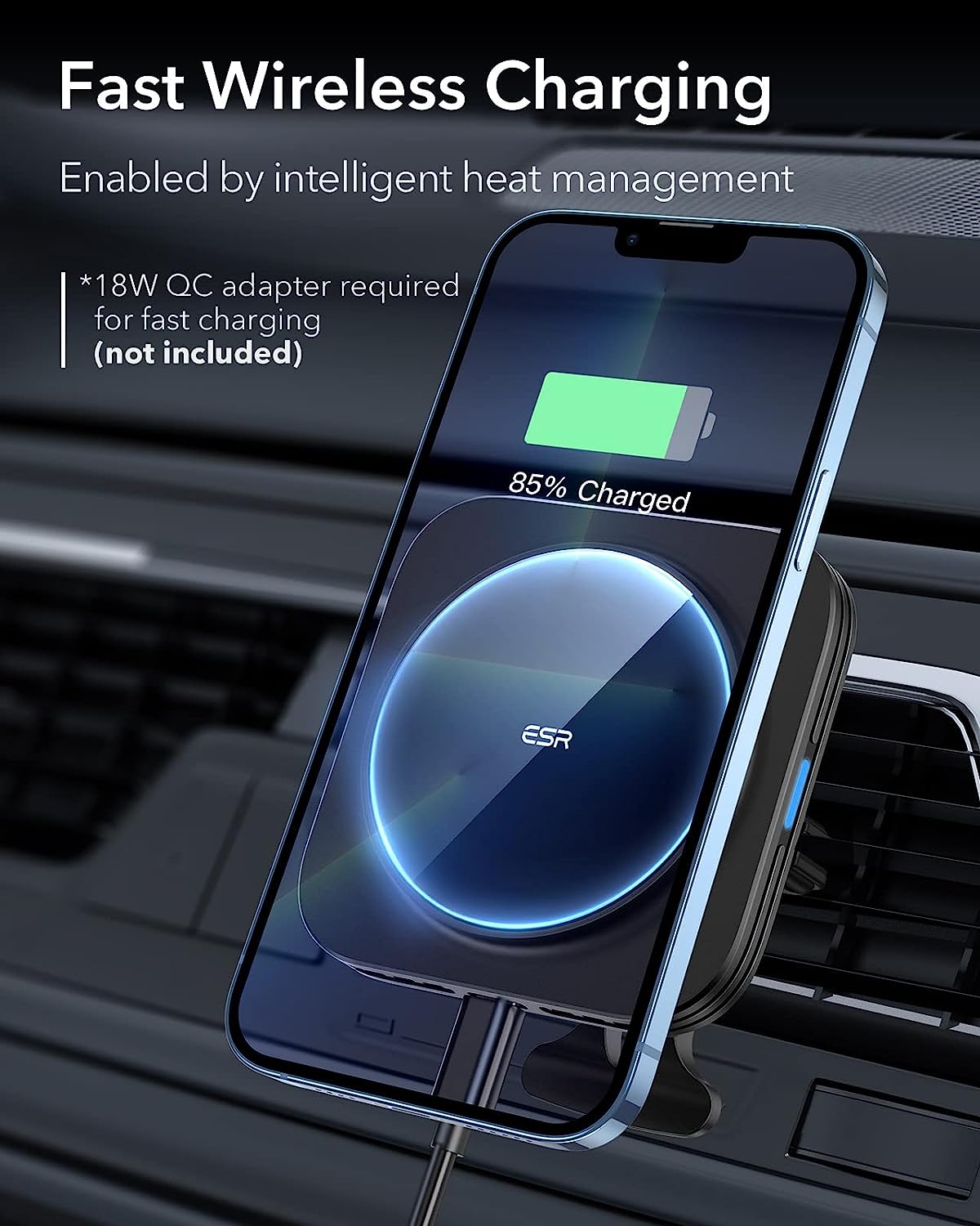• Fast Charging: intelligent heat management enables you to charge at speeds nearly identical to official MagSafe chargers; 18W QC adapter required for fast charging (not included)