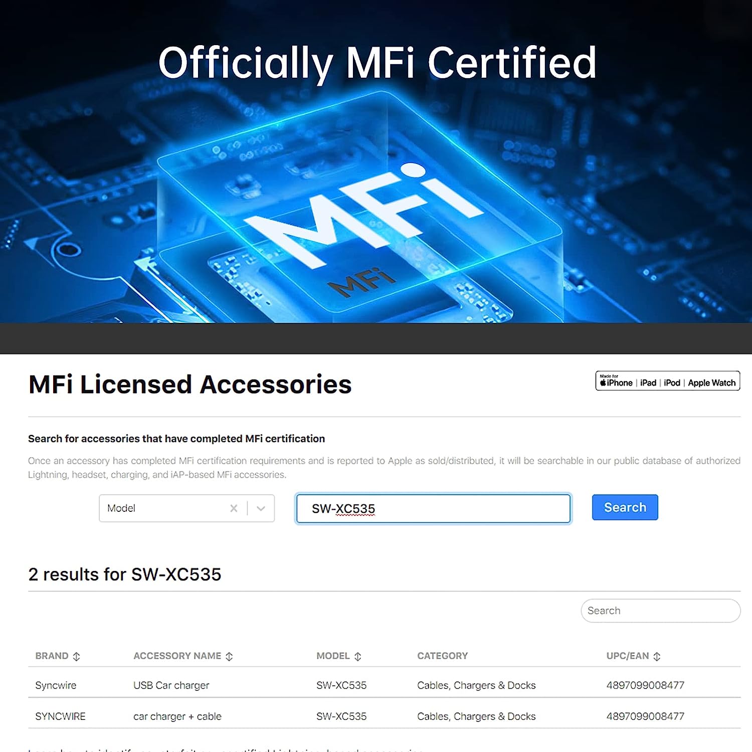 • Advanced certification - Approved for UL & CE & FCC certification. Syncwire iPhone car charger is suitable for all vehicle models with DC 12-24V input. No interference issues with radio, Bluetooth or Wi-Fi.