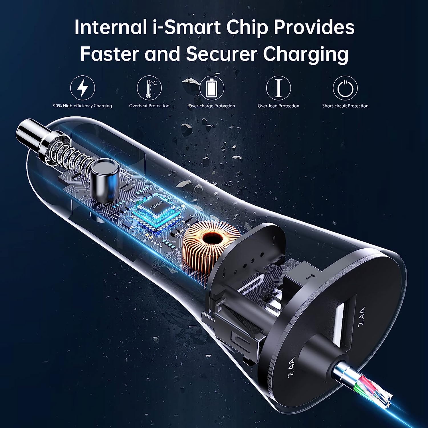 • Lightning-fast i-Smart USB car charger - compatible with Apple iPhone 14/13/12/11/XS/XS Max/XR/X/8/8 Plus 7/7 Plus/6S/6S Plus/6/6 Plus/SE/5S/5C/5/iPad/iPod. Additional USB port can charger any other USB-powered devices including Samsung Galaxy, Note, Nexus, HTC, Sony, LG, tablet, power bank and more.