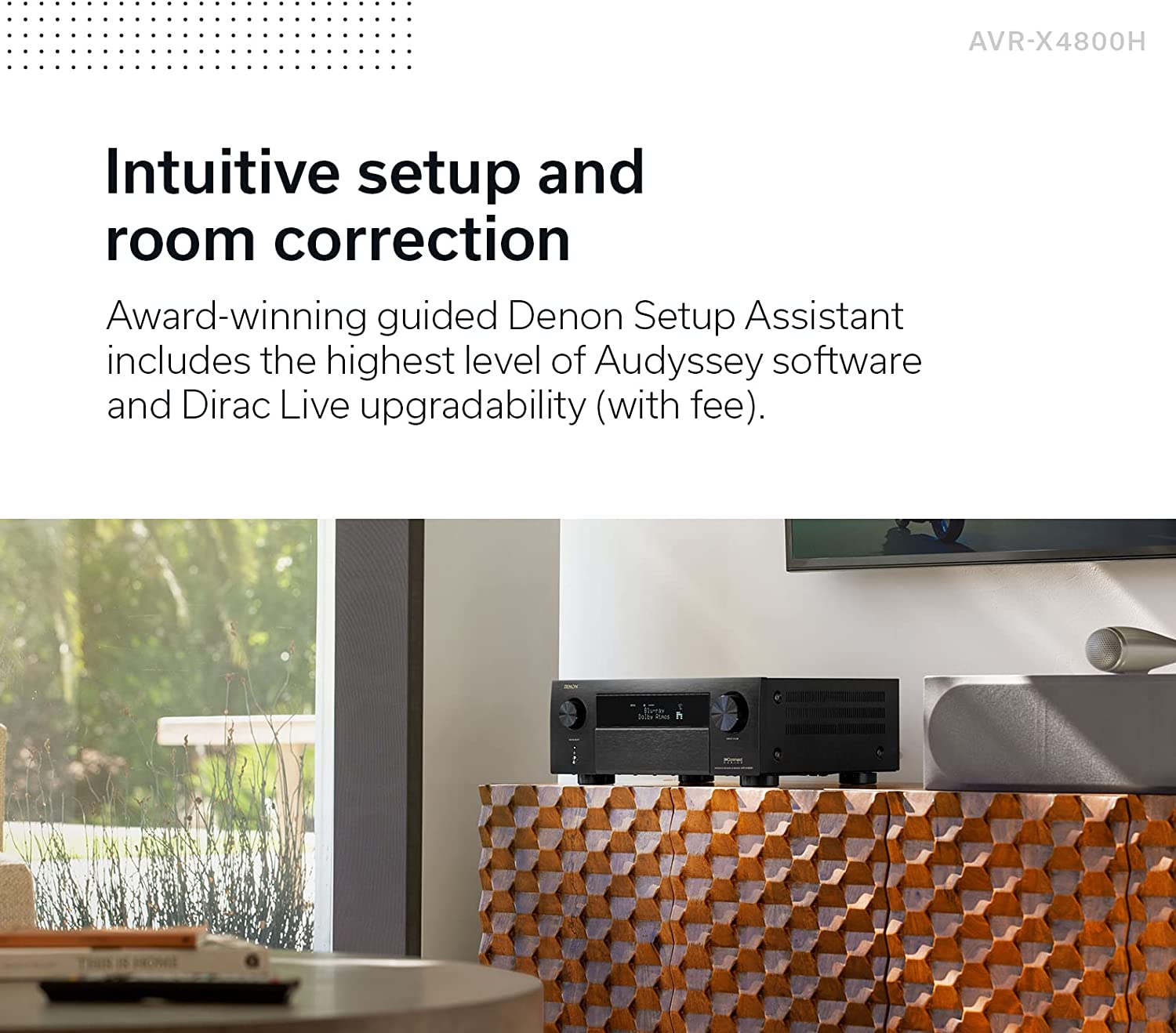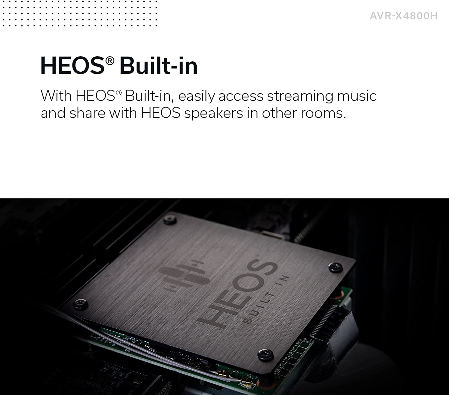 Powering 80W per channel, the Denon AVR-X1700H 7.2 channel 8K AV receiver supports the latest in 3D audio formats, including Dolby Atmos, Dolby Atmos Height Virtualization Technology, DTS:X and DTS Virtual:X. With six HDMI inputs and 1 HDMI outputs, it features the latest HDMI specifications such as 8K/60Hz, select 4K/120Hz pass-through, VRR, ALLM, Dolby Vision, HDR10+ and eARC support. With HEOS Built-in, stream music wirelessly from Spotify, Pandora, Amazon Music HD, TIDAL, Deezer and more. Works with Amazon Alexa, Google Assistant, Apple Siri and Josh.ai for seamless voice control. Play music or control your home appliances, light, and speakers optimally from any corner of your house with just a voice command.
