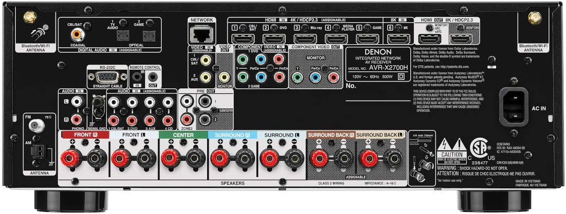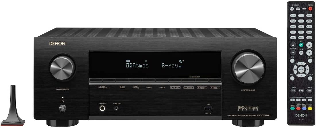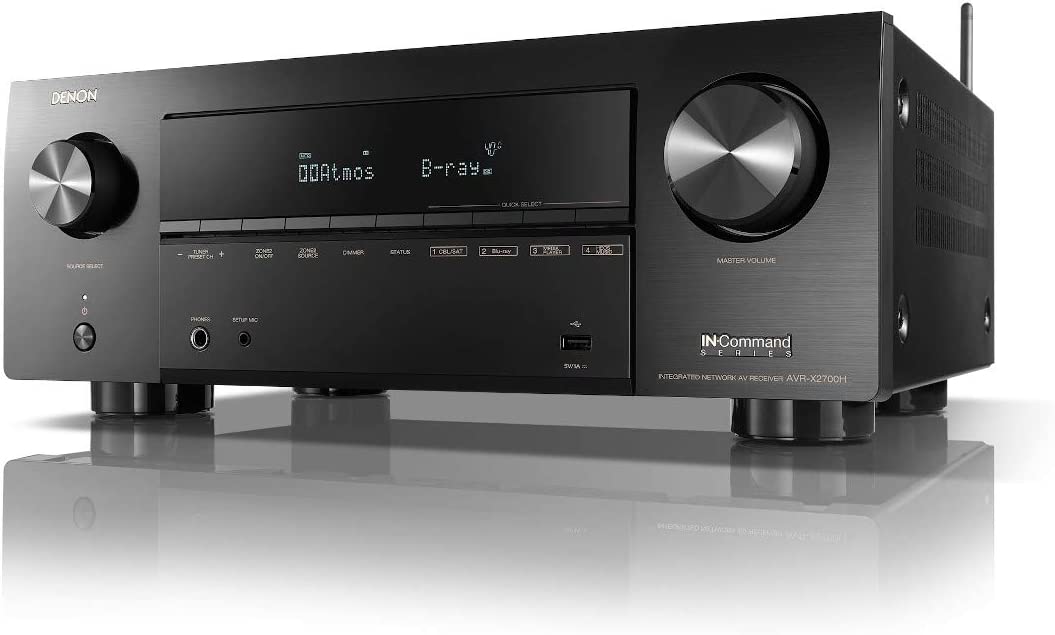 Upgrade to a Superior Home Theater Experience Denon AVR-X2700H 7.2ch 8K AV receiver with 95W per channel fully supports 3D audio formats Dolby Atmos, Dolby Atmos Height Virtualization Technology, DTS: X, and DTS Virtual: X. The AVR-X2700H features the latest HDMI specifications such as 8K/60Hz, 4K/120Hz pass-through, VRR, ALLM, HDR10+, Dynamic HDR, and eARC support.