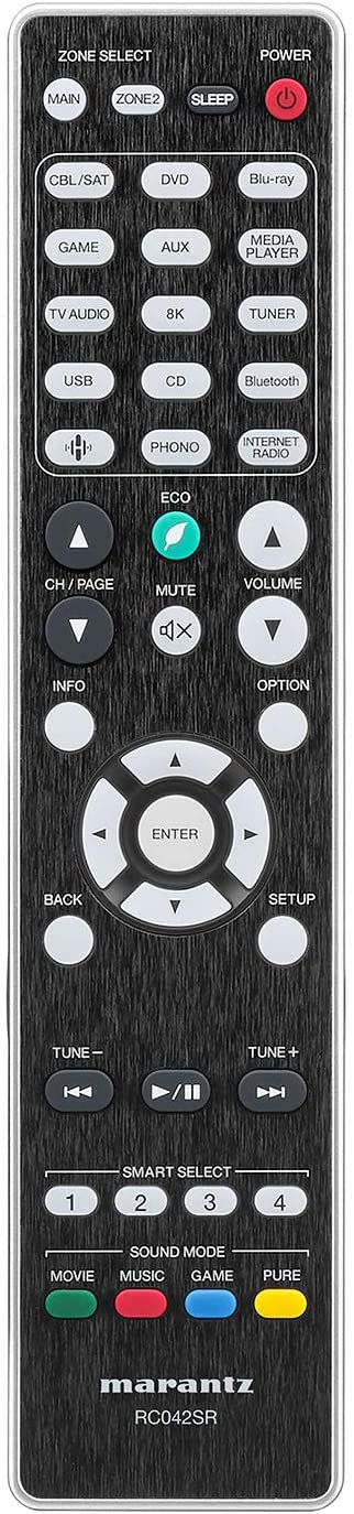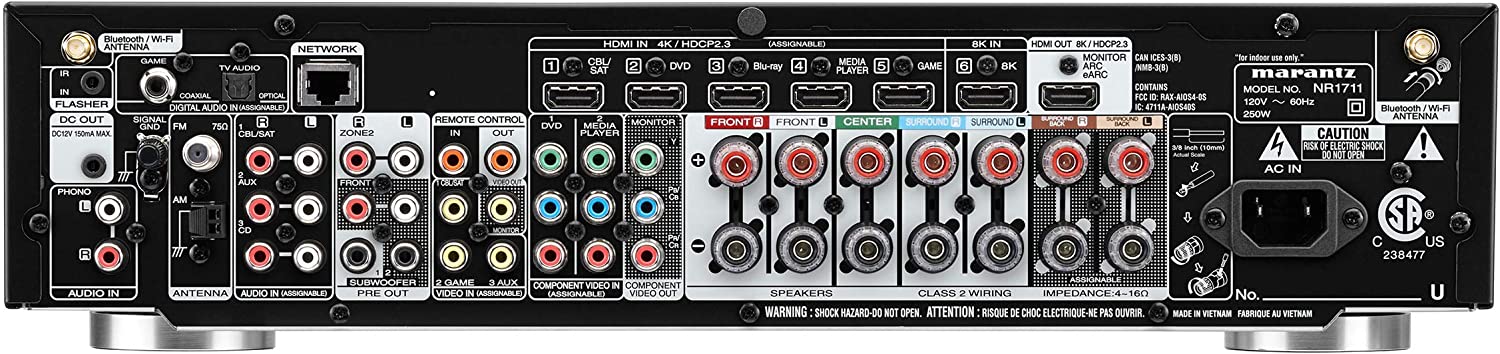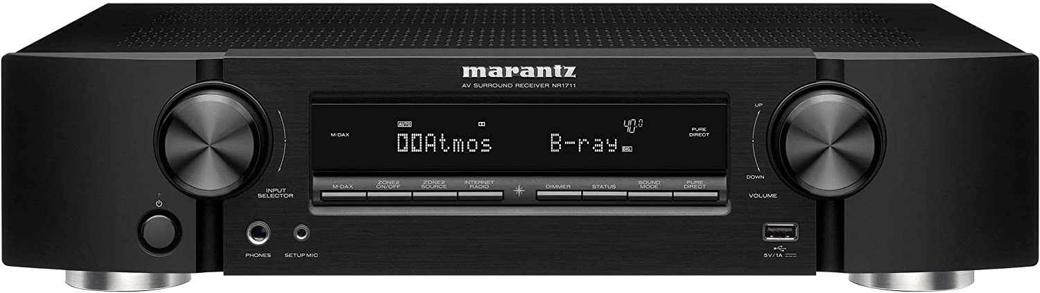 Hear the most musical sound from an elegantly slim profile. The Marantz NR1711 7.2 CH 8K Ultra HD AV receiver drives immersive, high-fidelity audio from a compact chassis. At half the height of a traditional AV receiver, the NR1711 supports multi-dimensional audio formats Dolby Atmos, Dolby Atmos Height Virtualization Technology, DTS:X, and DTS Virtual:X. You can experience these object-based audio codecs from smart TVs apps through the main HDMI output. Enjoy exquisite video performance thanks to the latest HDMI technologies such as 8K/60Hz pass-through or upscaling, various HDR format support including HDR10, HDR10+, Dolby Vision, Hybrid Log-Gamma (HLG) and Dynamic HDR, as well as the latest gaming technologies such as 4K/120Hz pass-through, Variable Refresh Rate (VRR) and Auto Low Latency Mode (ALLM). Enjoy your extensive music collection with support for Hi-Res formats, a front-panel USB and phono equalizer to connect your turntable. Stream music from leading music services and control the NR1711 with voice control compatibility via Amazon Alexa, Google Assistant, Apple Siri, and Josh.ai. Note about 4K/120Hz - Does not support pass-through from all 4K/120Hz media sources.
