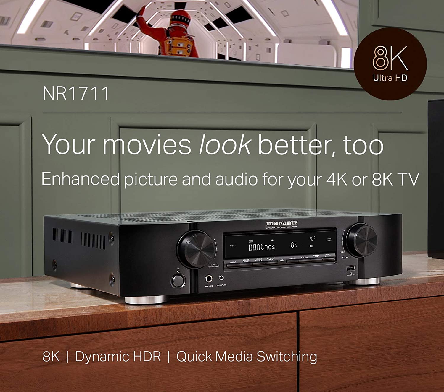 Marantz NR1711 8K Slim 7.2 Channel Ultra HD AV Receiver (2020 Model) – Wi-Fi, Bluetooth, HEOS Built-in, Alexa & Smart Home Automation - 8K Videos & Multi-Room Streaming