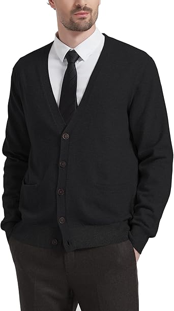 Kallspin Men's Cardigan Sweaters Wool Blend V Neck Button Down Sweaters with Pockets