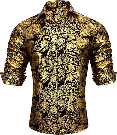 Barry.Wang Night Club Dress Shirts for Men Shiny Holiday Party Print Shirt Long Sleeve Button Regular Fitted Tops