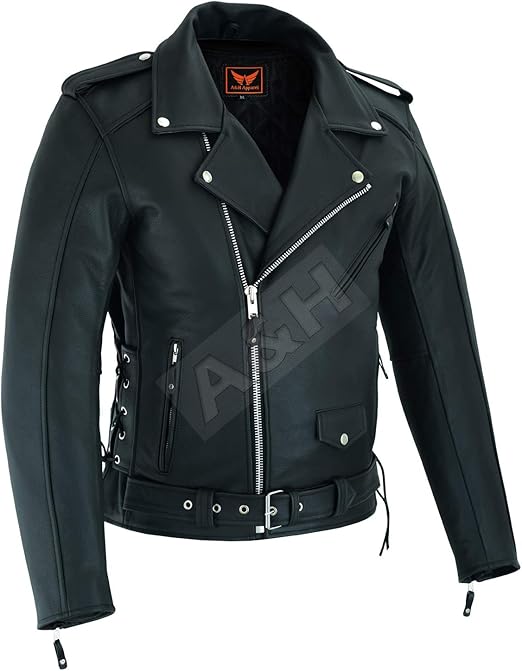 A&H Apparel Mens Leather Motorcycle Top-Grain Buffalo Jacket Genuine Zip Out Lining Jacket