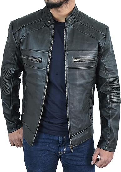 Cafe Racer Premium Leather Jacket Men - Motorcycle Biker Style Slim Fit Real Lambskin Men's Leather Jacket Classic