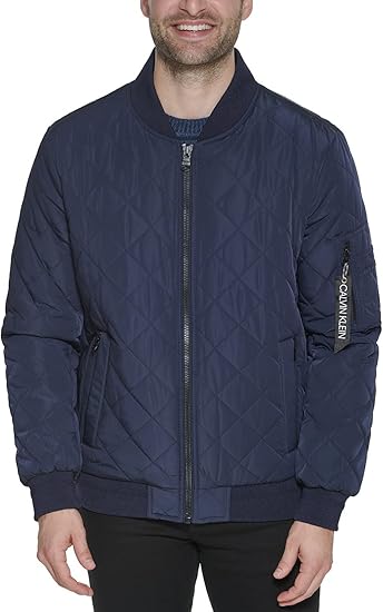 Calvin Klein Mens Lightweight Quilted Bomber Jacket (True Navy, Medium)