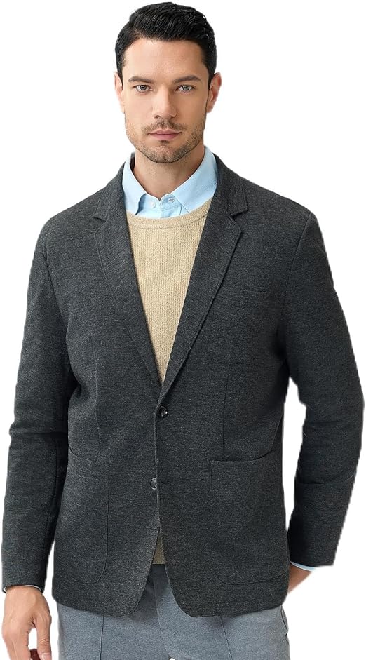 Casual Blazer for Men Stretch Sport Coat Knit Suit Jacket Notch Lapel Two Buttons with Pockets