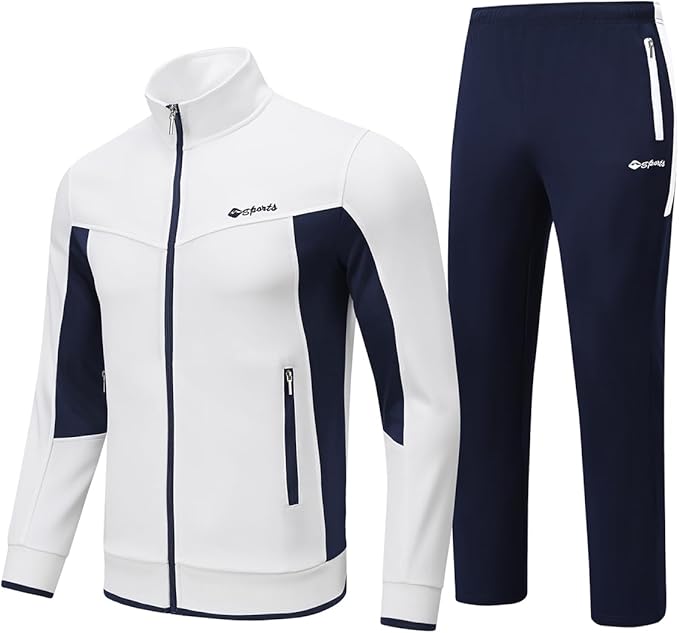 BASUDAM Men's Track Suits 2 Piece Set Long Sleeve Warm Up Tracksuits Zip-Front Athletic Casual Running Jogging