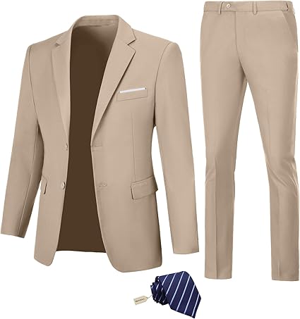 Men Suit Slim Fit 2 Piece Solid 2 Button Business Suits Blazer Wedding Prom Tuxedo for Men Suit Jacket Pants with Tie