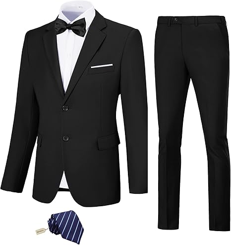 Men's 2 Piece Slim Fit Suit Set, Two Button Solid Jacket Pants with Tie Suits for Men