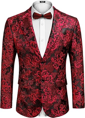 COOFANDY Men's Floral Tuxedo Jacket Rose Embroidered Suit Jacket Wedding Prom Dinner Party Blazer