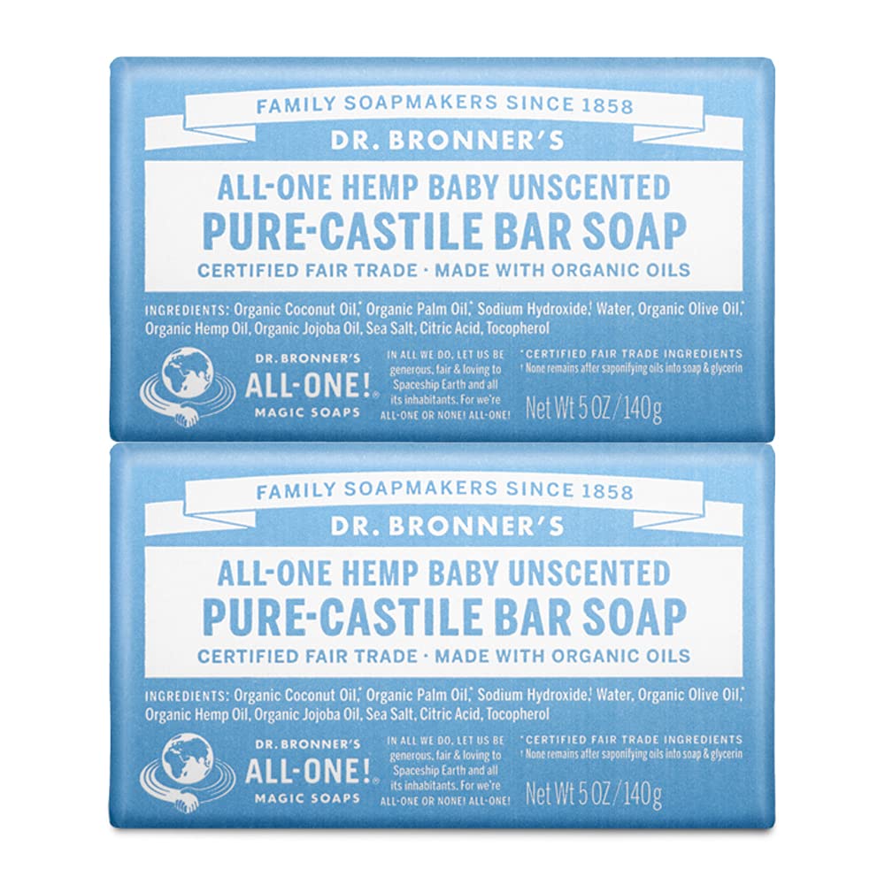 Dr. Bronner’s - Pure-Castile Bar Soap (Baby Unscented, 5 oz, 6-Pack) -Made with Organic Oils, For Face, Body & Hair, Gentle for Sensitive Skin & Babies, No Added Fragrance,Biodegradable,Vegan,Non-GMO