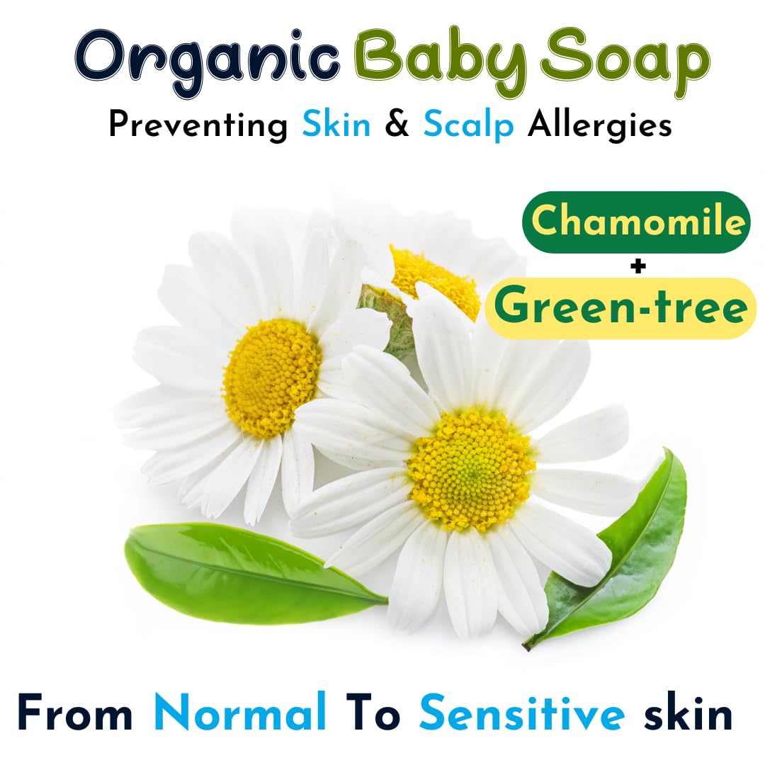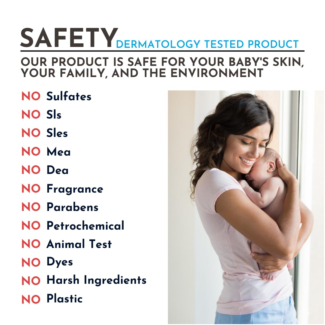 • Naturally Nourishing Baby soap : Our hypoallergenic baby wash bars are meticulously crafted with plant extracts and mild Natural oils, ensuring a gentle touch on your baby's skin. With a cruelty-free approach, our products are NOT TESTED ON ANIMALS and are entirely Phthalate, Paraben, Petrolatum, & SLS Free! Perfect for parents seeking baby soap for sensitive skin, baby face wash, and kids' body wash for sensitive skin.